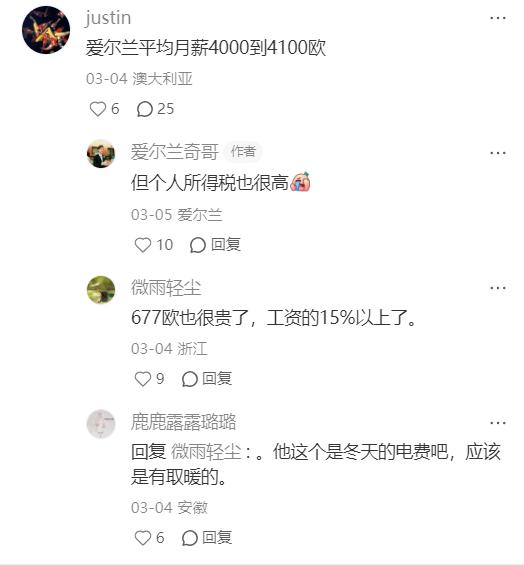爱尔兰老外直言:有种痛,中国人永远都不会懂。一个爱尔兰老外在中国生活多年,他发了一个视频,对比了在中国和爱尔兰生活的开支成本。 为了方便记述,下面我就用第一人称来讲述。 有普通老百姓的生活,像你们想的那样幸福。 最近,我的朋友和家人都总问我,在中国的生活成本里,电费、燃气费大概是多少? 我给你们举个例子,你们就知道了。 这是我爸妈在爱尔兰交的电费,两个人一个卧室,两个月的费用是677欧元,一个月大概340欧元,人民币的话大概是2700。 这是我上海交的电费,一个月平均的电费是150人民币。 那在爱尔兰,我没有水费,很多人也没有燃气费,只有一个电费成本。 很多爱尔兰普通家庭到了冬天,暖气开久了,看到账单真的会吐血。 有一些中国朋友夏天到欧洲旅游,也会发现好多地方没空调,电费实在太贵了。 欧洲有很多非常好的地方,假期多,福利好也是真的,生活成本也是真的高,尤其是在一些很基础的生活选择上。 我觉得可能每个地方的制度红利不一样,每种社会模式下,普通老百姓都在为不同的东西买单。