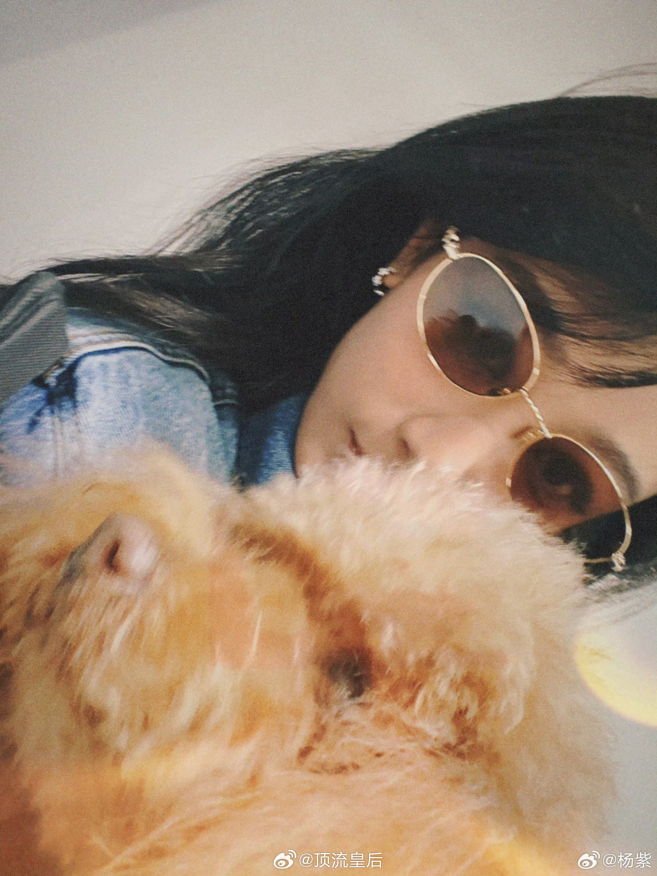 杨紫又晒和piupiu的合照啦,陪伴了很多年的小狗感觉已经成为了家人,去哪儿都带