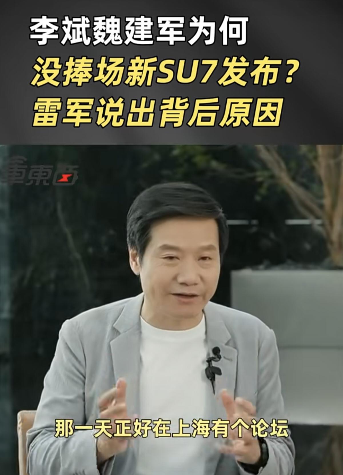 李斌和魏建军没来参加新一代小米SU7发布会的原因,雷军正面回应来了! 新一代小米SU7发布会,来了五位车企董事长,比亚迪董事长王传福,理想汽车董事长李想,小鹏汽车老板何小鹏,阿维塔董事长王辉等!唯独2024年到场的蔚来李斌,长城汽车董事长魏建军却没有,网友各种猜测! 3月23日直播中,雷军回应网友疑问:“李斌总那一天正好在上海有个论坛,魏总、魏建军是他们有个全球供应商大会。所以在这里,我也特别感谢李斌总跟魏建军总,真的很感谢大家。小米进入汽车行业,我们还是希望跟所有的同行共同推动产业的发展。” 他这么说,一是澄清事实、平息“关系破裂”的猜测,展现开放包容的行业格局。二是表达对老友与同行的尊重,维护良性竞合关系。 李斌未到,是因当天在上海出席先进制造业峰会暨半导体产业高峰论坛,需发表演讲,聚焦汽车芯片等核心议题,关乎蔚来技术布局。魏建军缺席,是因要主持长城汽车全球供应商大会,事关供应链稳定与全球化战略,无法抽身。两人均为早已敲定的关键公务,与小米发布会时间完全撞期,并非不愿到场。 雷军的回应坦诚得体,既化解舆论争议,也传递出中国车企“竞合共生”的理念,为小米汽车树立了友好、成熟的行业形象。