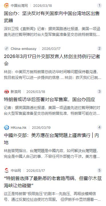 中方回应真是斩钉截铁,一点面子都不给特朗普,直接说"具体没有可提供的消息"。 这下好了,不知道特朗普会怎么圆回来了,全世界都在看他的笑话。 麻烦看官老爷们右上角点击一下“关注”,既方便您进行讨论和分享,又能给您带来不一样的参与感,感谢您的支持! 要说这事儿,得从美国最近的操作说起。那边厢,特朗普政府正琢磨着一笔对台大型军售案,据说里面还包括什么先进的拦截导弹,这明显是踩了中方的红线。这边厢呢,又传出要安排访华的消息。这手牌打得,典型的“交易式外交”,想拿着台湾问题当筹码,一边跟你谈,一边给你施压。这不就是想空手套白狼吗? 咱们外交部的回应也是绝了,记者追着问访华的具体安排,发言人林剑就回了句“目前我没有可以进一步提供的信息”。这短短一句话,潜台词太丰富了。意思就是,你这边想谈,那边又在搞小动作,连最基本的诚意都没有,这访华的事儿,咱还真没法往下聊。这种“冷处理”,比任何激烈的言辞都更有力量。 其实这已经不是美国第一次玩这种“两面派”了。特朗普这个人,从商出身,特别喜欢把商业谈判里的那一套极限施压搬到国际舞台上。他可能觉得,只要够强硬,够反复,对方就会在压力下妥协。但问题在于,国际政治不是做生意,特别是涉及到中国核心利益的台湾问题,红线就是红线,哪有讨价还价的余地? 他这套玩法,在中东也碰了壁。那边霍尔木兹海峡局势紧张,特朗普想让中国派舰船去护航,还拿访华的事儿当杠杆。结果怎么样?中方根本不接这个茬,甚至还决定给伊朗、约旦这些国家提供人道主义援助。这一对比,高下立判。他想让全世界跟着他的指挥棒转,但世界不是他的公司,每个国家都有自己的原则和底线。 说白了,美国这种把内政问题外溢化的做法,长远看是伤了自己的信誉。他们搞这么多动作,很大程度上是为了国内的政治利益,比如中期选举什么的,想塑造一个对华强硬的形象。但这种短视的做法,只会让中美关系更加紧张。你一边卖武器给台湾,一边又想跟大陆领导人握手,这世界上哪有这么好的事? 国台办那边也把话讲得很明白,坚决反对任何国家向台湾地区出售武器,这是始终如一、非常明确的立场。台湾问题,是中美关系的第一条红线,这条线要是模糊了,其他所有问题都免谈。美方要是真想好好谈,就该把“恪守一个中国原则”这句话落到实处,而不是玩文字游戏。 对于特朗普来说,这可能是个挺尴尬的局面。他一直标榜自己是个谈判高手,最擅长的就是在交易里最后时刻翻盘,让别人承担损失。但这次他面对的,是一个根本不吃这套的对手。他想把“交易的艺术”套用到中美关系上,结果发现这根本不是一场能让他随心所欲的游戏。 中国的外交风格,从来都是坦坦荡荡的。我们欢迎平等、相互尊重的对话,也始终对合作持开放态度。但如果有人想一边损害中国核心利益,一边还想通过对话来给自己脸上贴金,那对不起,这扇门暂时得关一关。就像外交部说的,中美双方确实就访华时间等问题保持着沟通,但具体细节,没有更多消息。这话说得很体面,但态度也很坚决——没有诚意的沟通,我们没兴趣。 所以,接下来特朗普怎么把这话圆回去,确实是个看点。是继续硬撑,还是调整策略?不管他怎么选,有一点是确定的:在核心利益上,中国不会给任何人留面子。这场博弈,不仅关乎中美关系的走向,更是在告诉世界,什么叫“相互尊重、平等相待”。如果华盛顿那些政客们还想不明白这个道理,那类似的“尴尬”恐怕还会有很多。 说到底,中美关系这么重要,谁都不想搞僵。但搞好的前提,是必须守规矩。一边砸着人家的锅,一边又想来吃饭,这搁谁身上都接受不了。希望美方真能听懂中方这句“没有可提供的消息”背后的分量。毕竟,大国之间的交往,最重要的就是一个“信”字。没了信任,再多的访问也谈不出什么结果,反而会变成一场国际笑话。