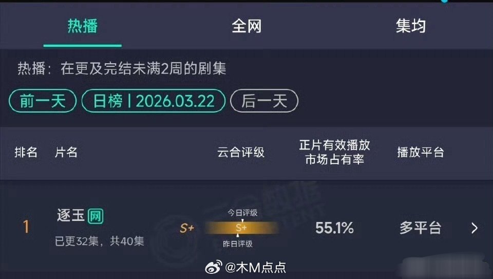逐玉云合占比新高55.1% 超越庆余年2拿下历史第二
