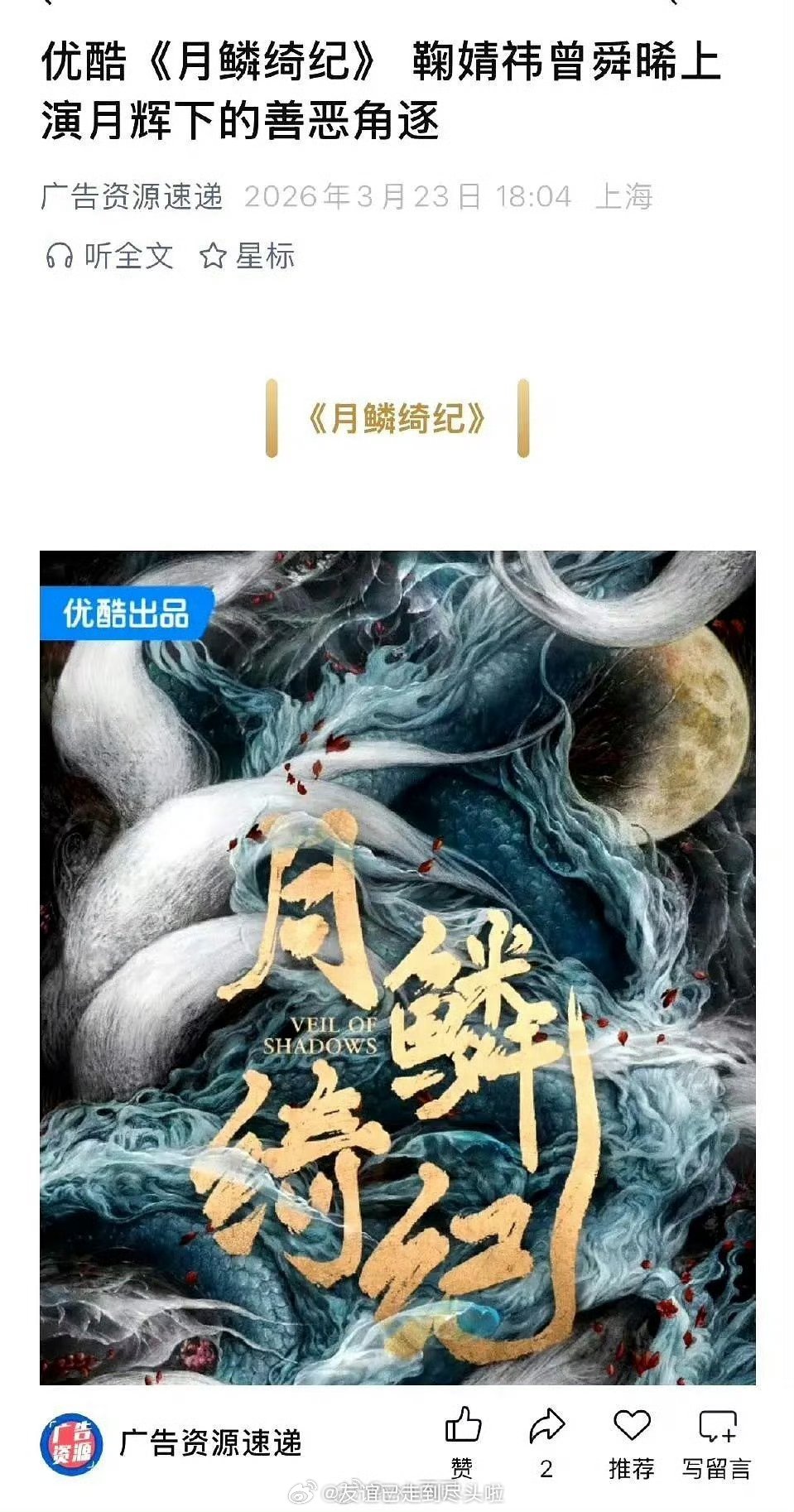 《月鳞绮纪》开始招商了,传说4月上,有播出实感了