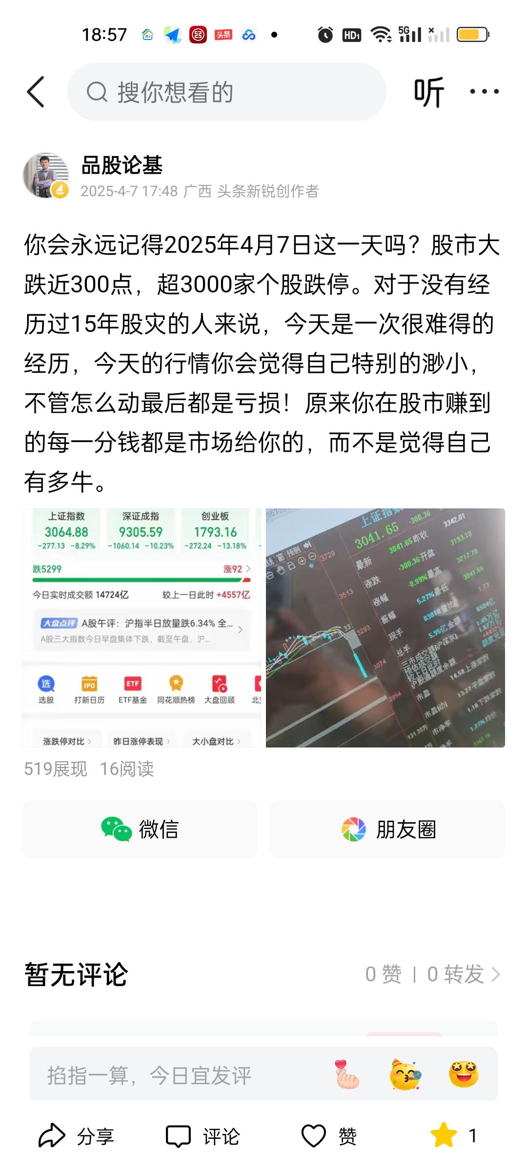 你只要经历过25年4月7日的暴跌,对今天的这种跌幅就不会觉得意外了。当时为何会暴跌,因为有个人说要全球增加关税,增幅100%,当时盘中跌停家数超过3000家。不仅个股跌停,许多基金跌幅都在10%以上,跌停的基金也超过2000只。市场一片哀嚎。你现在回过头去看3040点是不是马上就拉回来了? 那天我发了一篇头条只有16人阅读,我有个习惯,阅读量低于1000的文章,一周后我都会选择删除。我认为文章既然不受欢迎,留着就没有意义。但这篇文章我一直保留到了今天,它时刻提醒我,一定要把风险控制排在第一位。 今天这个暴跌根本原因是什么?不还是某人说要48小时内解决问题吗? 48小时马上就看到了,要验证时效性吗?至于加息传言这个就是烟雾弹。一个预期管理如此严谨的国度,加息周期和降息周期哪是那么容易改变的。跟过家家一样,可能吗?