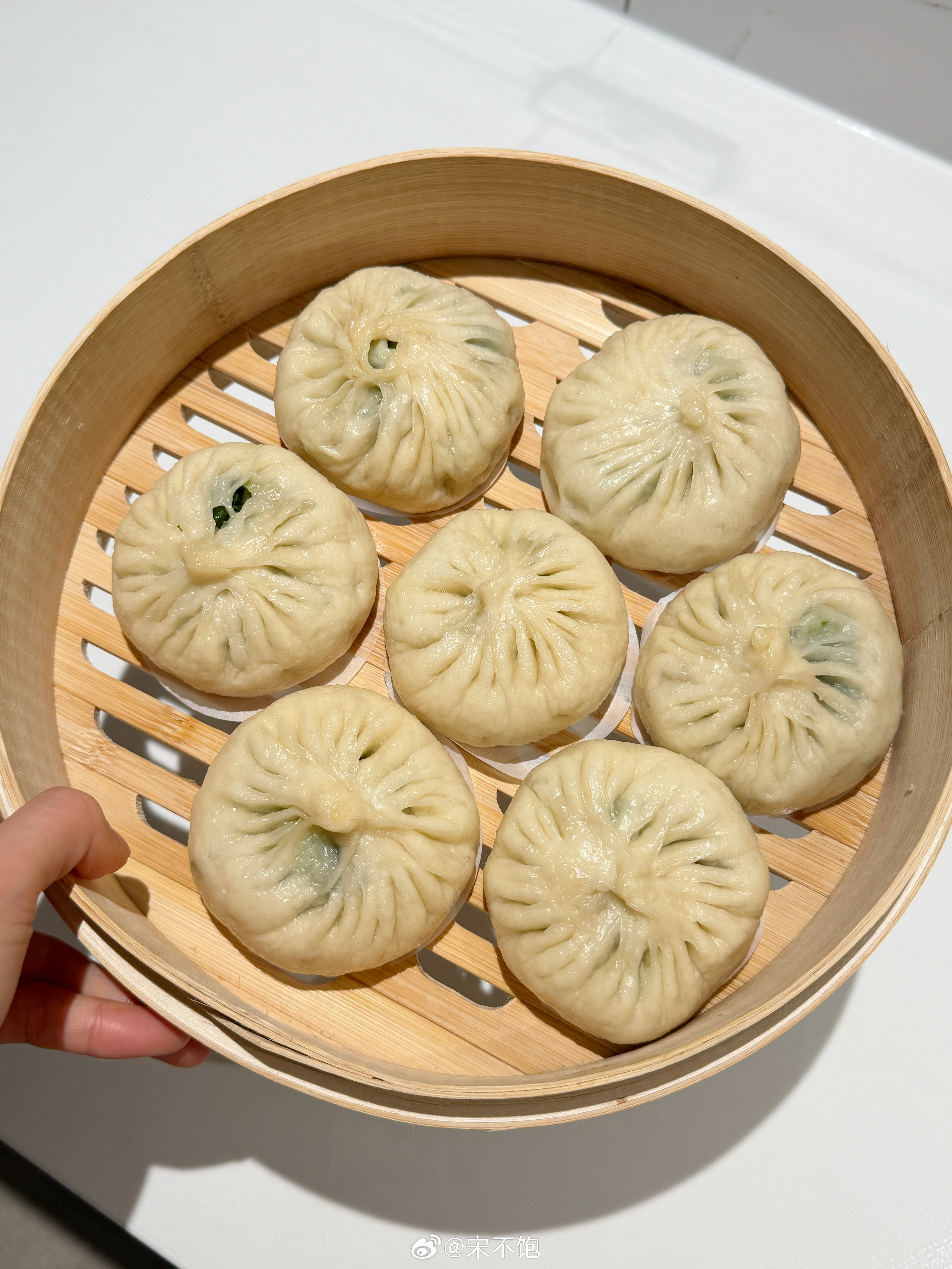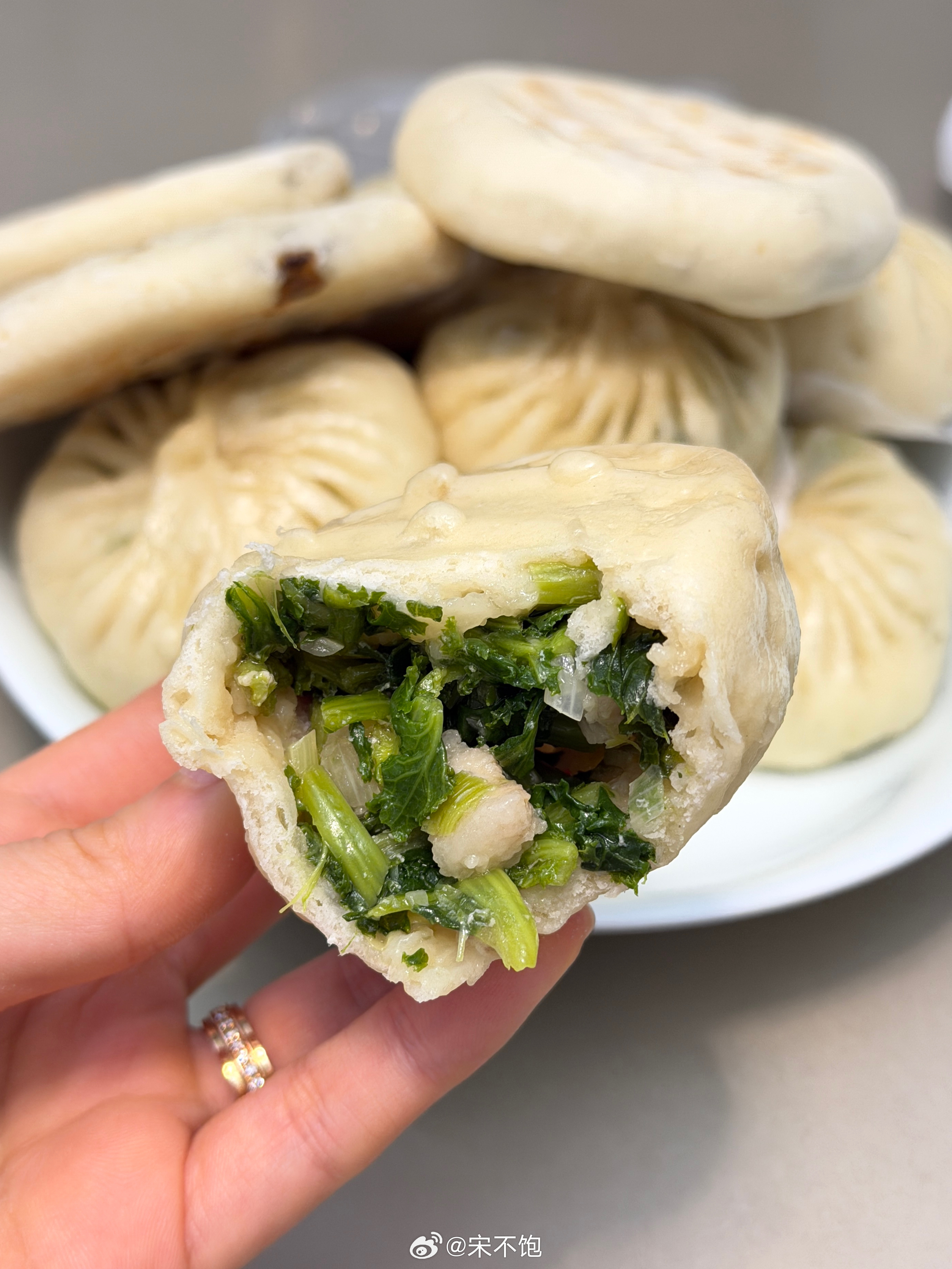 家里如果有不爱吃蔬菜的小朋友,试试做成包子,这个季节的青菜和野菜都特别嫩,拿来包包子,香个大跟头。肉松平时一顿饭得哄着能吃几口菜,这样的小苔菜包子,他一顿能吃四个!换成荠菜、上海青🥬各种绿叶菜都好吃!