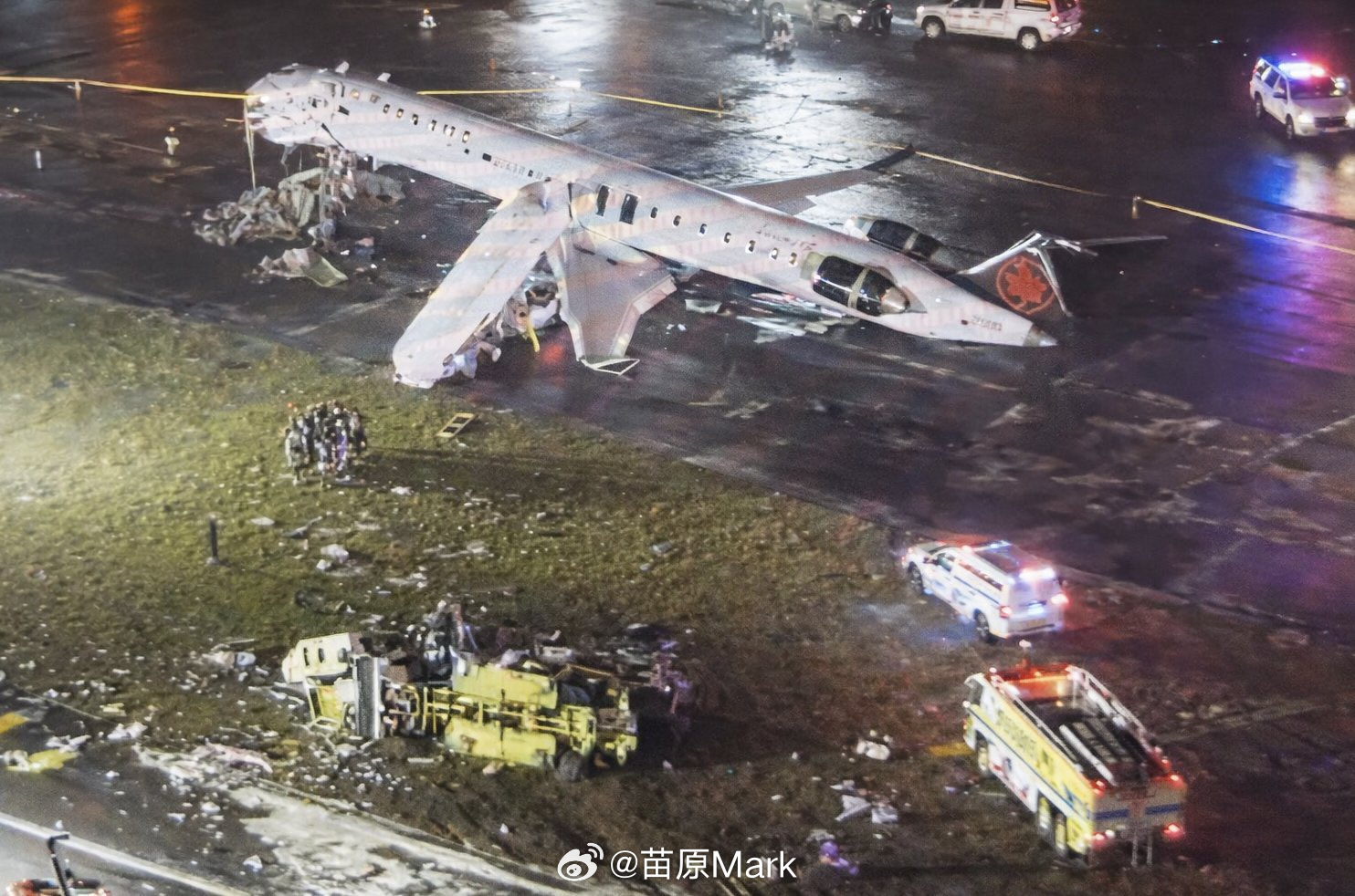 加拿大的飞机在纽约拉瓜迪亚撞上了一辆消防车,机长、副机长无了,70人受伤,32人