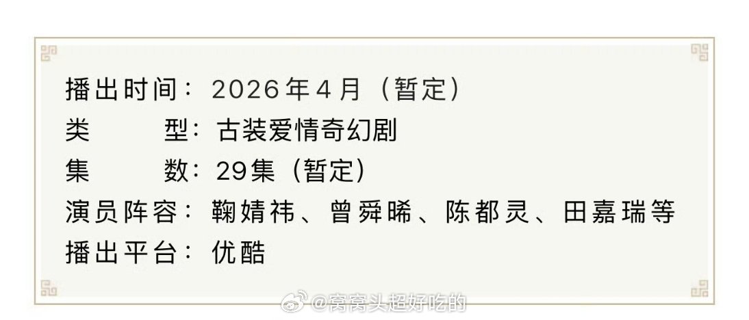 鞠婧祎 曾舜晞 陈都灵 田嘉瑞 闫桉《月鳞绮纪》已经播前招商,4月播出,4.10
