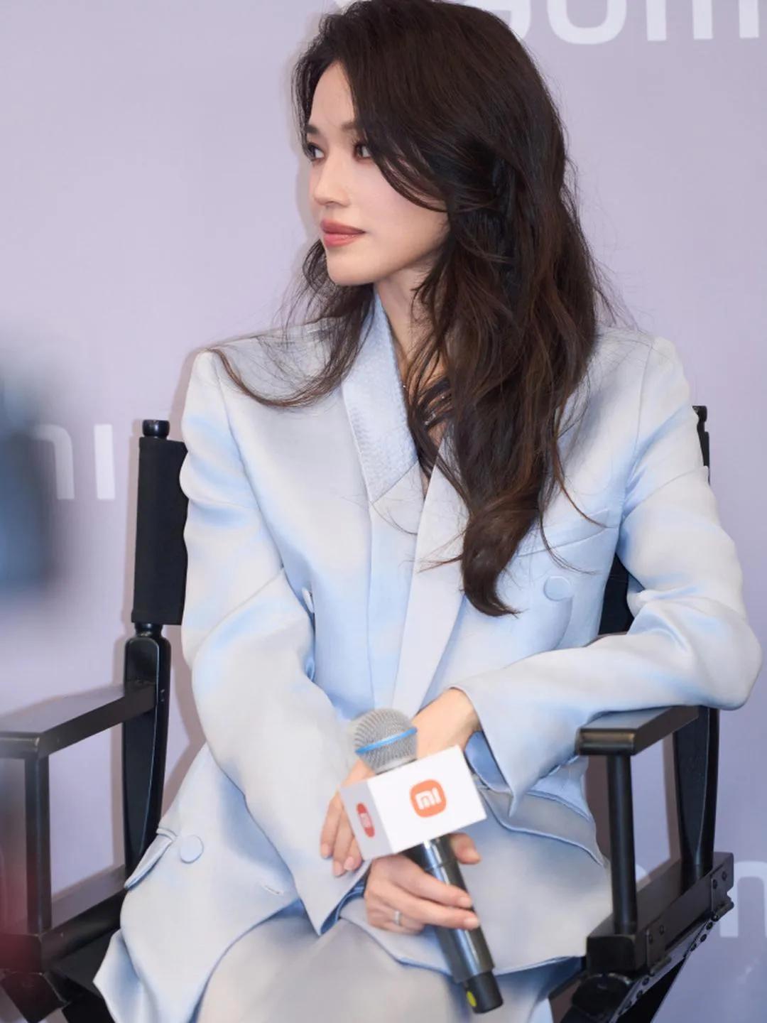 舒淇的气质真的太出挑了! 浅蓝西装+阔腿裤套装,简约又高级,走路带风的样子,把松