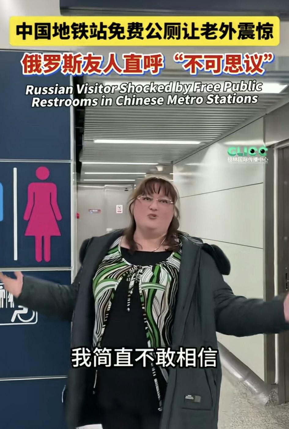 中国的公共厕所免费,这个俄罗斯博主觉得不可思议,她发现中国地铁的厕所免费,而且非常干净,这让她非常震惊。 因为俄罗斯的公共厕所是收费的,而且不算干净。 对于她的震惊,我想说,中国的公共厕所十多年前也收费的,不过有人因为这个抗议,去争取大众免费上公共厕所的权利,最后成功了,才有现在的免费公厕。
