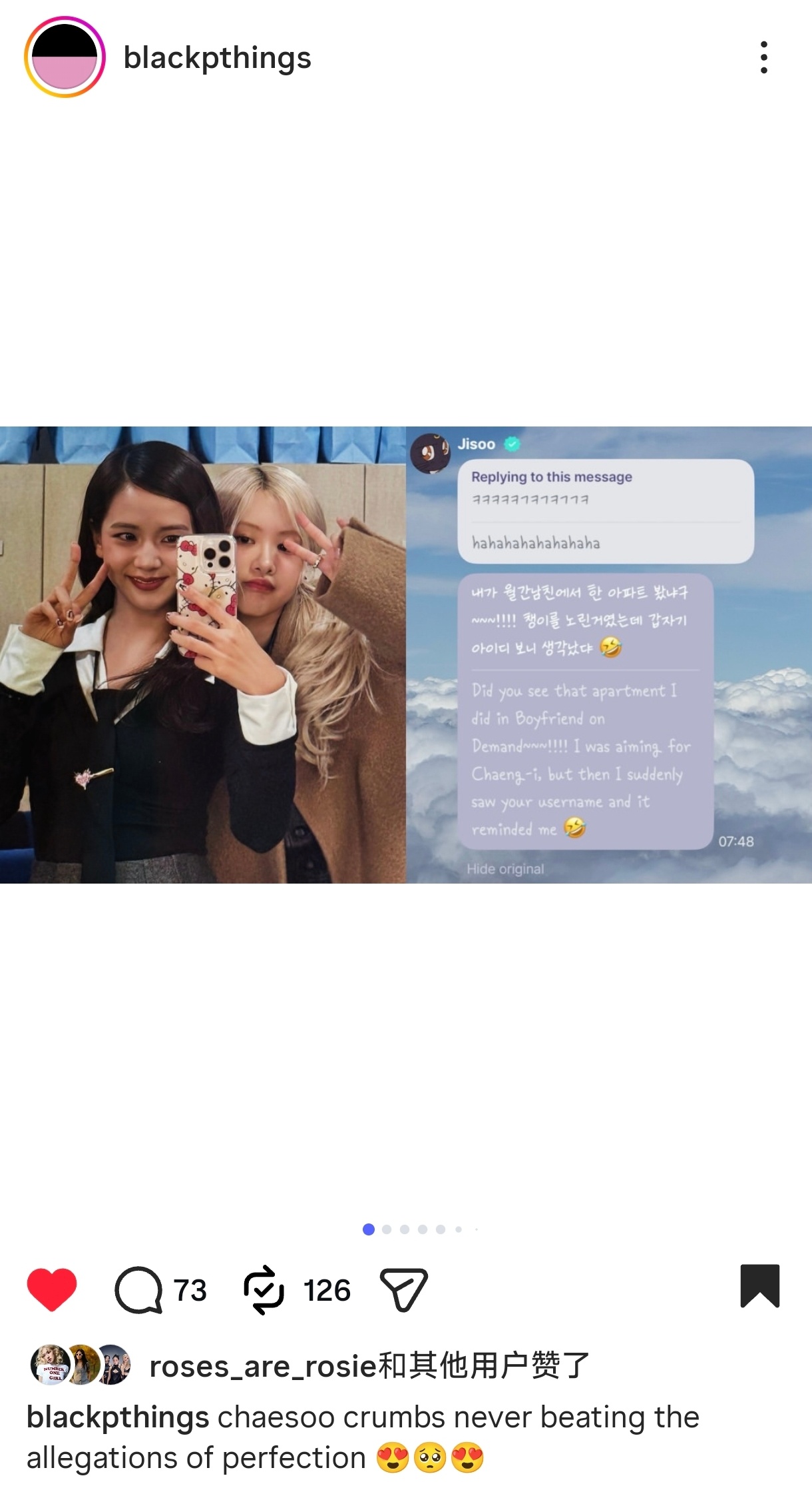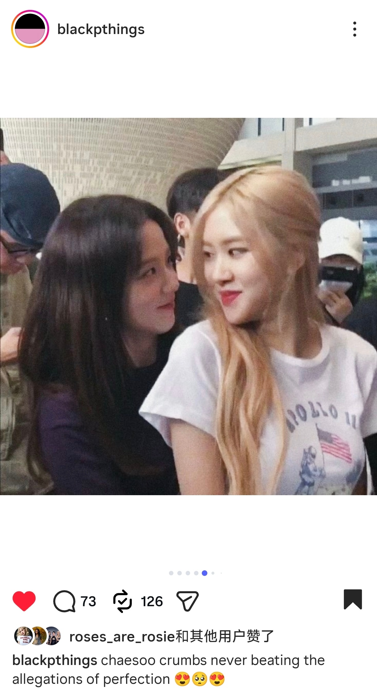 Rosé点赞了和Jisoo的cp贴🐇🐿️哎一古Chaesoo你们继续这样隔空调情~