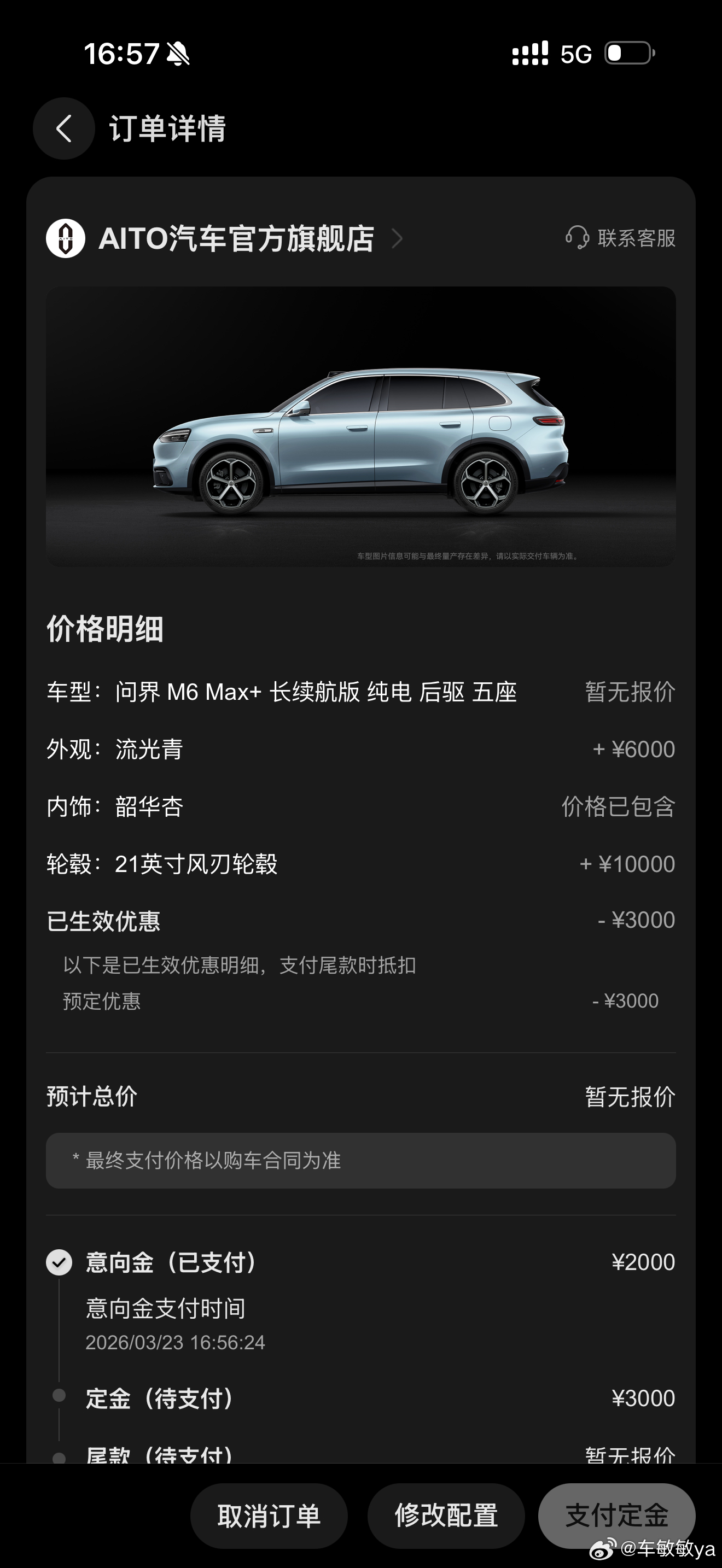 小订啦~ 好纠结青色还是白色问界M6全系标配896线激光雷达