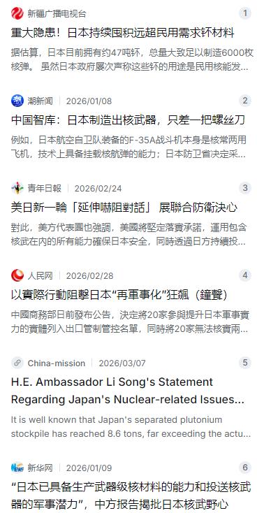 中美俄罕见意见一致:宁可此国从地球上消失,也绝不允许它拥有核武器。中俄经常联手反对美国霸权主义,但是有一件事,三国的意见却出奇地一致,那就是宁愿这个国家从地球上消失,也不能让它造出来核武器,这个国家到底是谁? 麻烦看官老爷们右上角点击一下“关注”,既方便您进行讨论和分享,又能给您带来不一样的参与感,感谢您的支持! 说得直白点,这三家现在的态度出奇一致:宁愿某个国家从地球上消失,也绝不允许它拥有核武器。这个让全球三大巨头同时坐不住的国家,不是中东的伊朗,也不是东北亚的朝鲜,而是我们身边的日本。 你可能会纳闷,美国不是日本的老大哥吗?怎么也不让小弟拥核?其实这里头的逻辑很简单:核武器这东西,不是谁都能碰的“玩具”。美国虽然在全球搞军事同盟,但它最怕的就是核不扩散这根弦崩断。一旦日本突破了这道底线,那韩国、澳大利亚甚至沙特都得跟着闹,到时候美国在亚太那点掌控力就全乱了。所以别看美国天天喊着“保护日本”,但在核武器这事儿上,它比谁都盯得紧。 再说说数据,为什么全世界这么紧张?因为日本早就不是那个只靠“和平宪法”过日子的国家了。根据最新的公开数据,日本手里攒着的分离钚已经超过了47吨。47吨是什么概念?专家算过一笔账,这些材料如果用来造核弹头,足够造出6000枚左右。这还只是保守估计,而且这里面相当一部分是武器级的,技术上拧把螺丝刀就能用。 日本以前老拿“民用核电”当挡箭牌,可现在这个借口也编不下去了。受当年福岛核事故的影响,现在日本全国还在运行的核反应堆就那么几台,而且大部分用的都是普通铀燃料,根本不需要烧钚。就算按它自己画的饼,到2030年把烧钚的反应堆增加到18个,一年满打满算也就能消耗2.6吨。可日本这些年不仅没消化库存,每年还从英国和法国往回运好几吨新钚,这明摆着是“只进不出”,账根本算不平。 其实说白了,日本之所以能这么“玩火”,是因为它钻了国际规则的漏洞。它是全世界唯一一个没有核武器、却掌握全套后处理技术、能随时提取武器级钚的《不扩散核武器条约》缔约国。这就像一个人嘴上说自己不打架,手里却时刻攥着一把开了刃的刀,还把刀锋磨得锃亮。更让人后背发凉的是,这些年日本一直在悄悄攒运载工具——买了400枚“战斧”巡航导弹,把F-35A战机这种核常两用的平台当宝贝用,技术上早就做好了挂载核弹头的准备。 而且,这种危险不是我们一家在说。就在今年1月初,中国军控与裁军协会联合中核战略规划研究总院专门发了一份重磅报告,标题就叫《日本右翼的核野心:对世界和平的严重威胁》。这份报告里提了个特别形象的比喻,美国专家形容日本造核弹,就像拧一把螺丝刀那么简单。这话可不是吓唬人,以日本现在的工业底子,真要铤而走险,几个月甚至几十天就能把家伙事儿给造出来。 当然,中俄两国反对日本拥核,还有一段绕不开的历史心结。上世纪日本军国主义发动的侵略战争,给亚洲人民带来了深重灾难。如今日本右翼势力不仅不彻底反省,还在靖国神社等问题上反复挑衅,甚至跟俄罗斯有南千岛群岛(日称北方四岛)的领土争端,跟中国在钓鱼岛问题上也是摩擦不断。这种背景下,如果让日本再拿上核武器,那无异于给一个还在冒烟的灰堆里扔炸药包。 不过,进入2026年之后,局势有了新变化。一方面是日本新政府上台后,有些高官嘴上开始不把门,甚至公开暗示要讨论“核共享”或者引进核潜艇。另一方面,美国虽然在口头上对日本搞“延伸威慑”,用核伞罩着它,但在防止日本真正拥核这件事上,美国的态度其实极其坚决。2月份美日刚开完“延伸威慑对话”,美国人强调得很清楚,我可以在你这里部署核武器来防别人,但你自己绝对不能造。 可以说,现在的日本正站在一个危险的三岔路口。国际社会给的信号已经非常明确:要么老老实实恪守“无核三原则”,把多余的钚材料处理干净,接受国际原子能机构的严格核查;要么一条道走到黑,挑战二战后建立的国际秩序。如果是后者,那等待它的绝对不是“拥核大国”的荣光,而是来自中国、美国、俄罗斯甚至整个国际社会的全面封锁与严厉制裁。到时候,那句“宁可消失”的警告,恐怕真会变成现实。