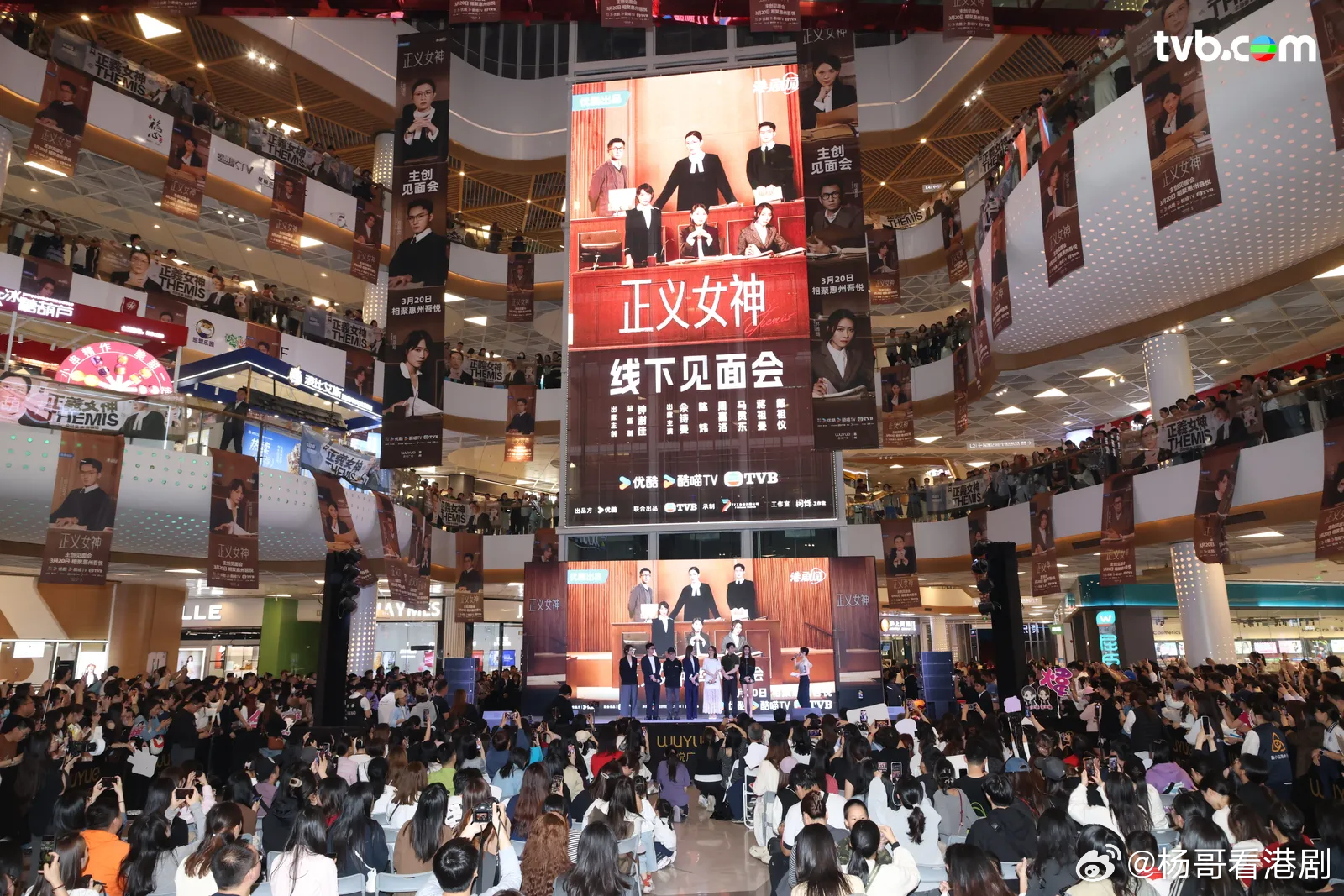 《正義女神》佘詩曼陳煒領軍惠州見面會 4層樓海報鋪滿商場聲勢拉滿※由TVB與優酷