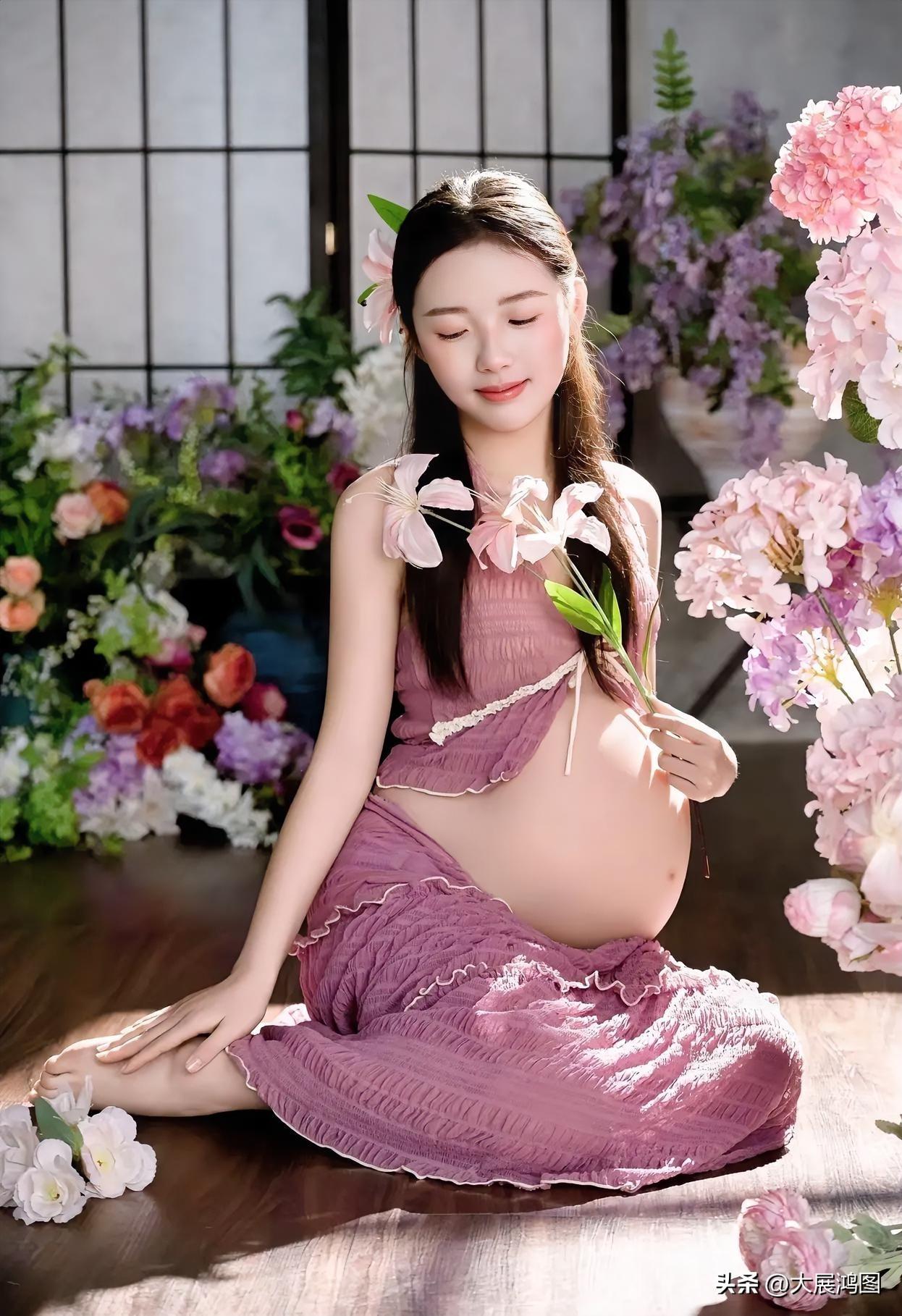 温柔孕姿,花海中的美丽期待。