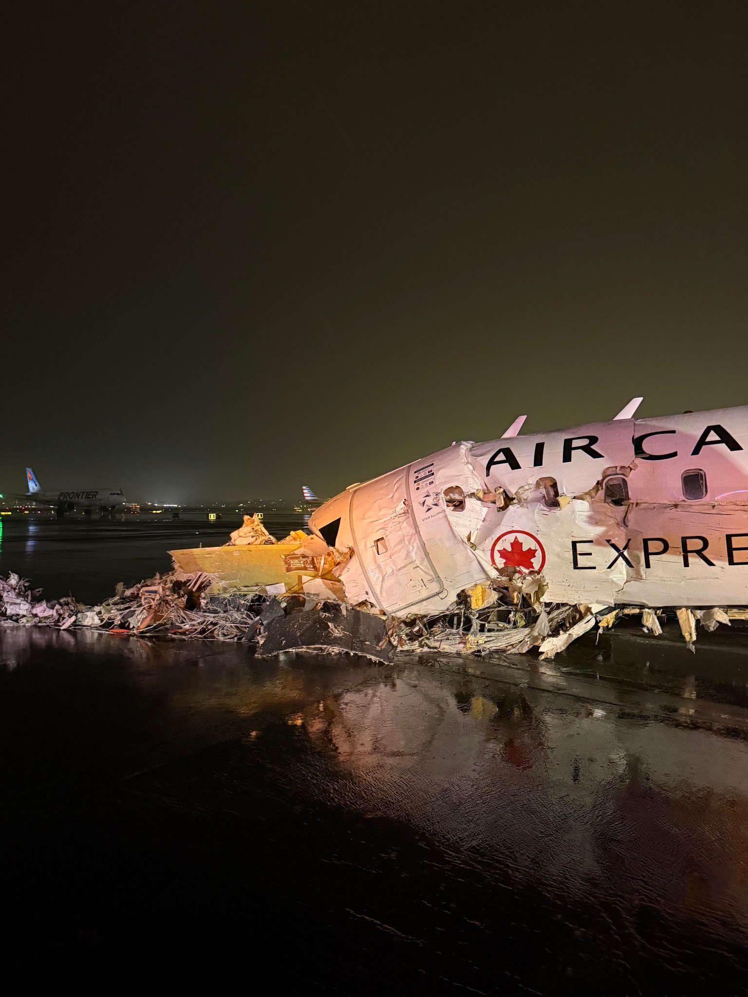 纽约机场客机撞车机长副机长死亡¹ 看到了现场一个乘客拍的照片,才发现为啥是机长、副机长遇难。是飞机头撞到,乘客全部下去之后,整个翘起来了。² 加拿大的飞机。至少70人受伤,好几个受伤严重。热点科普