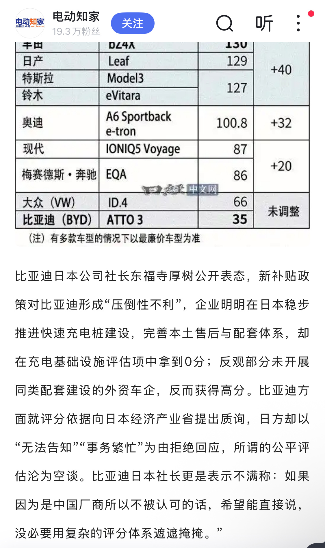按日本政府的口径来说,就是“要推动本国绿色出行转型”。但从实际执行结果看,真正获利的,还是本土车企。中国车企比亚迪,似乎并没有从中受益!标普分析师也表示,“尽管评估标准看似未变,但不同制造商之间的补贴金额却出现了明显偏差,某些方面可被视为政府在政策上的倾斜。”