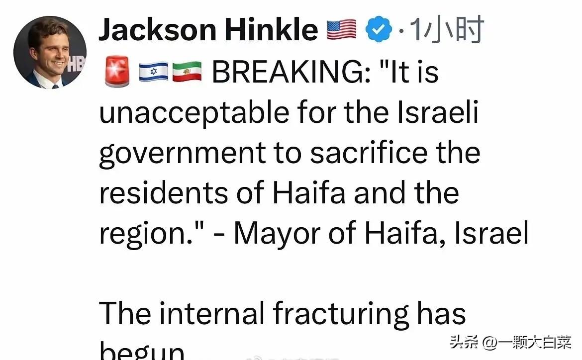 内部断裂已经开始了? ​以色列海法市市长表示:“以色列政府牺牲海法及周边地区居