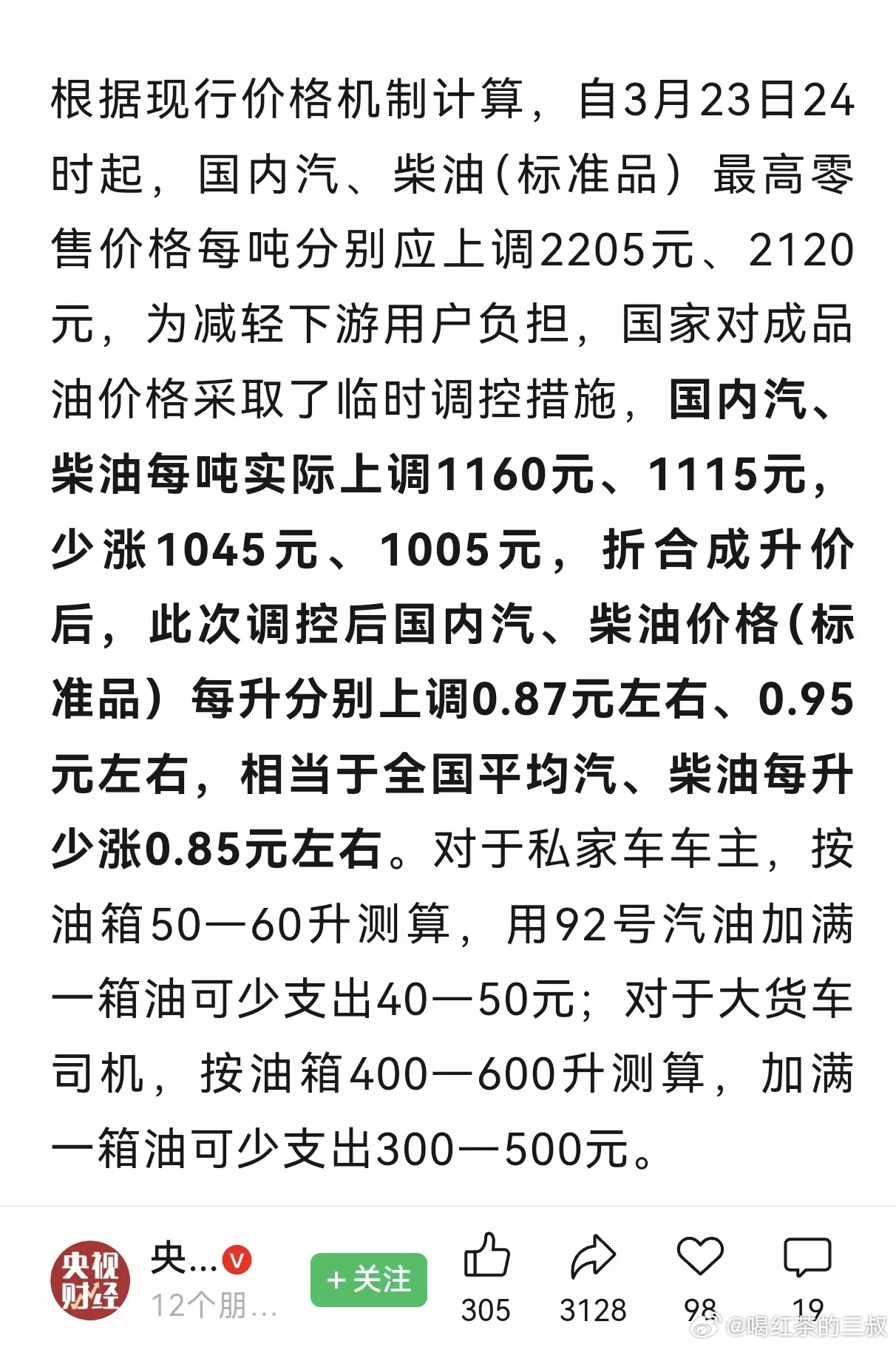 3月23日24时油价上调少涨了,点赞👍。电力是纹丝不动,也是最大调节。
