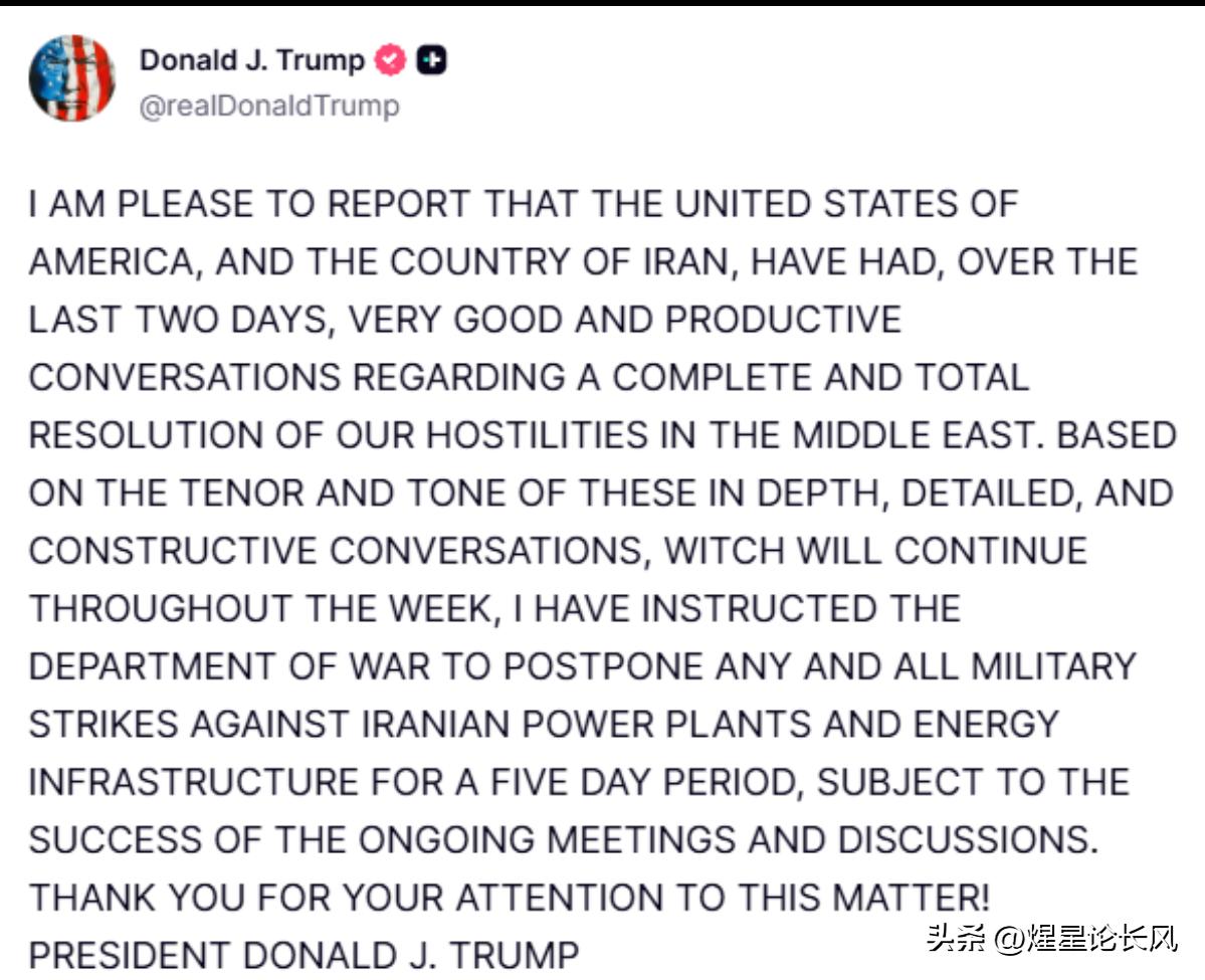 特朗普推迟5天对伊朗能源基础设施打击! 伊朗否认与特朗普进行讨论! 特朗普这是
