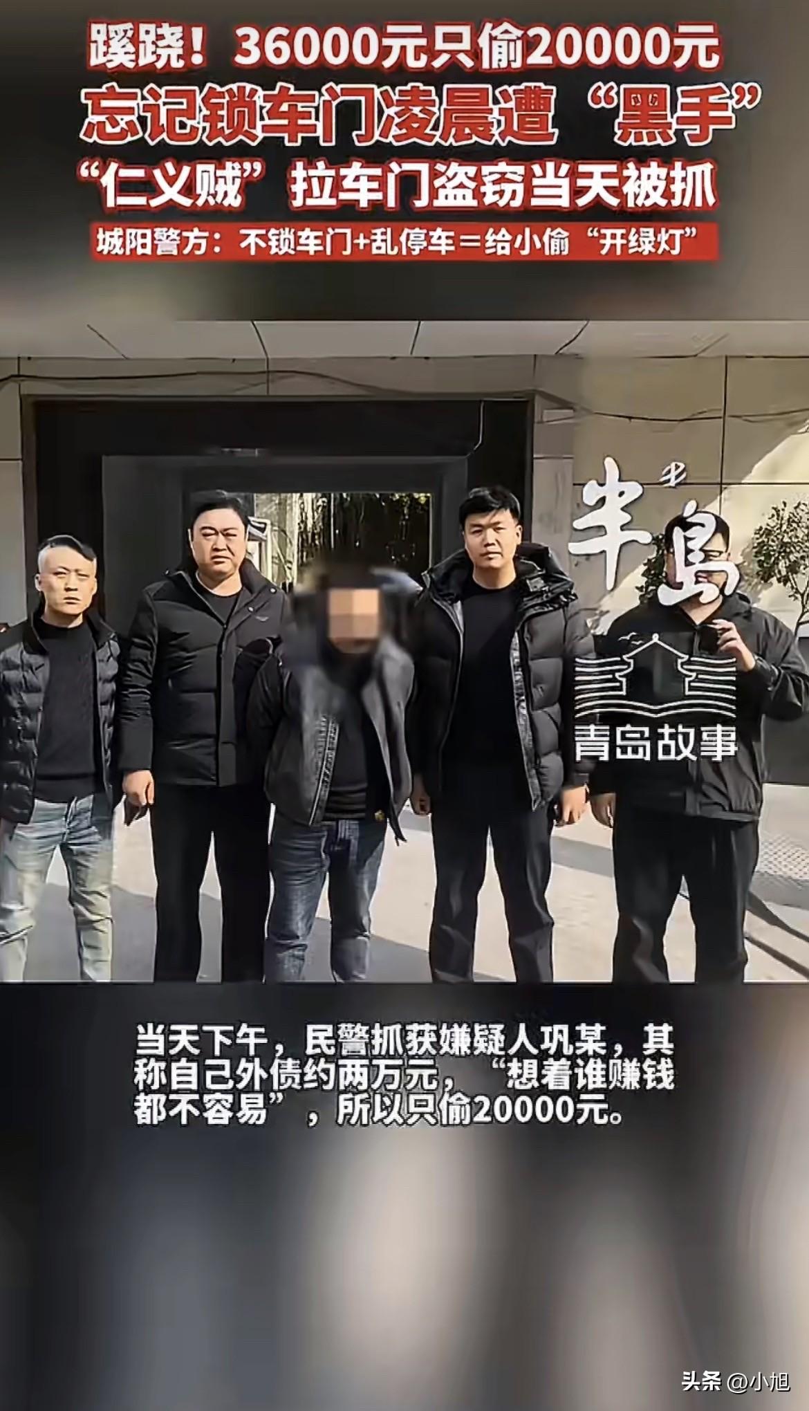 青岛那个车主报警的时候,说的是“我丢了20000块钱”。 民警到了现场一看,不对劲。 车玻璃好好的,门锁好好的,车里也没翻得乱七八糟。副驾储物盒里有个信封,打开一看,里面还剩16000,整整齐齐。 民警当时就嘀咕了:你是不是记错了?或者家里人拿走了? 哪有贼偷钱只偷一半的?这不是明摆着给警察留破案线索吗? 车主急了:不可能记错,36000,我亲手放的,一毛都不会差。 民警调监控。 凌晨的停车场,一个男人走过来。没砸窗,没撬锁,伸手一拉,门开了。 他在车里翻了几下,找到那个信封,打开看了一眼。监控里看不清他数没数,但能看见他在那站了几秒,然后把信封塞回去,关上门,走了。 整个过程,淡定得像是拿自己的东西。 当天下午,巩某被抓。 审讯的时候,他交代得特别痛快。拉开门,看见信封,打开,36000。自己外面欠了大概两万块钱的债,就拿了20000。 民警问他为什么不全拿走。 他说了句话:“想着谁赚钱都不容易。” 这话从他嘴里说出来,听着特别拧巴。 他拉开车门的时候,有没有想过车主赚钱不容易? 他翻储物盒的时候,有没有想过车主赚钱不容易? 他抽出那两捆钱、把剩下的塞回去的时候,倒是想到了。 而且他想得还挺清楚:外债两万,就只偷两万。不多拿,也不白拿,拿够还债的就行。 这个逻辑,放在别的地方可能是“有原则”。 放在偷钱这件事上,怎么看怎么别扭。 民警后来查了,那个信封放在副驾储物盒里,车主应该是刚取的钱,还没捂热乎。凌晨的停车场,车门没锁,这不就是“请君拿钱”吗。 巩某可能自己也觉得,全拿走了太缺德,留一半,心里能过得去。 但问题是,那36000,本来一分都不该是他的。 他这个“只偷一半”,到底是良心发现,还是给自己找个心理安慰? 你觉得这种贼,算有底线,还是算虚伪? (来源:大众新闻-半岛都市报)