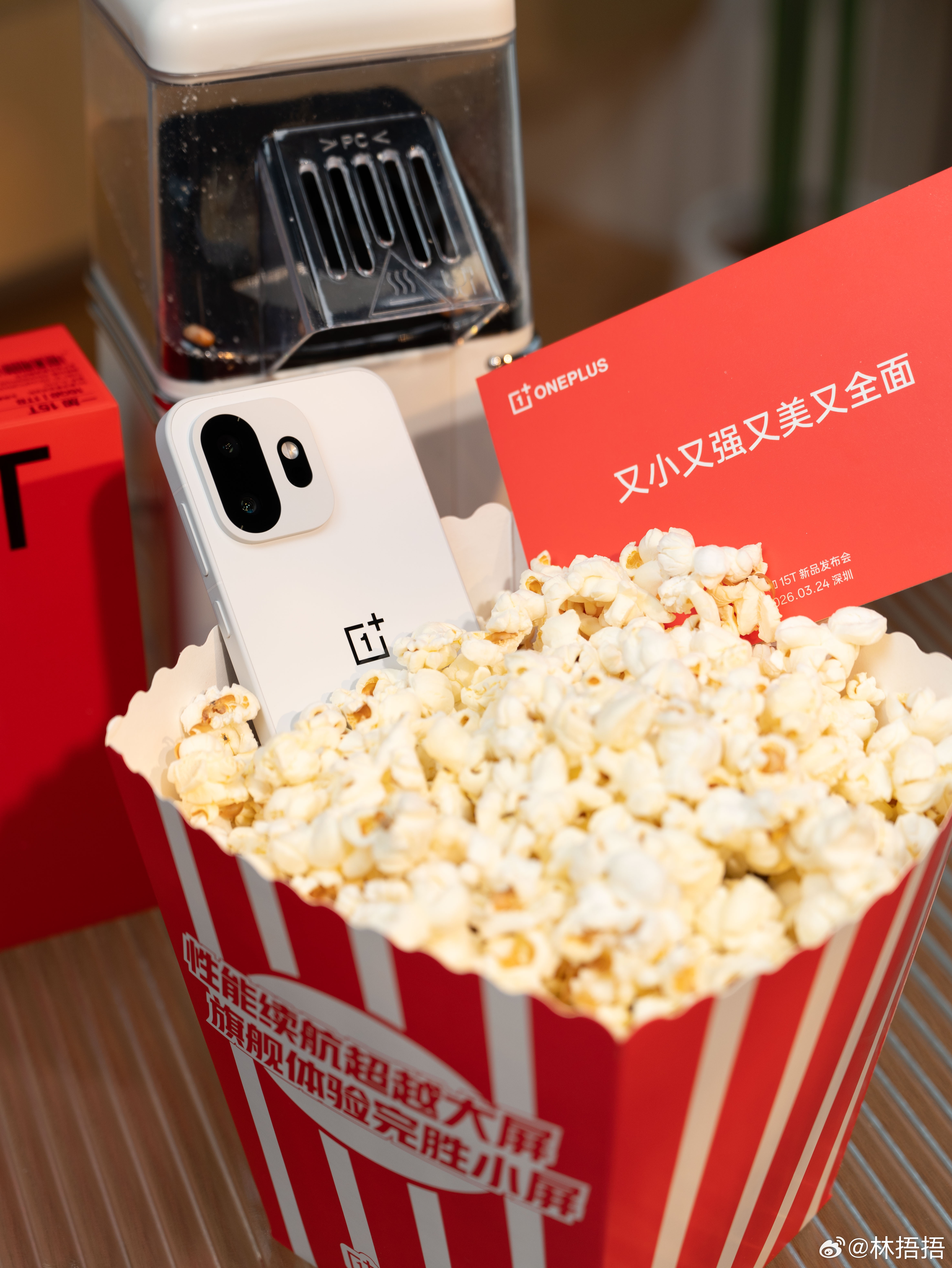 收到了一个爆米花机,启动以后爆出了一台精致小巧的一加15T,爆米花机名副其实,又能爆米花,又能爆手机。