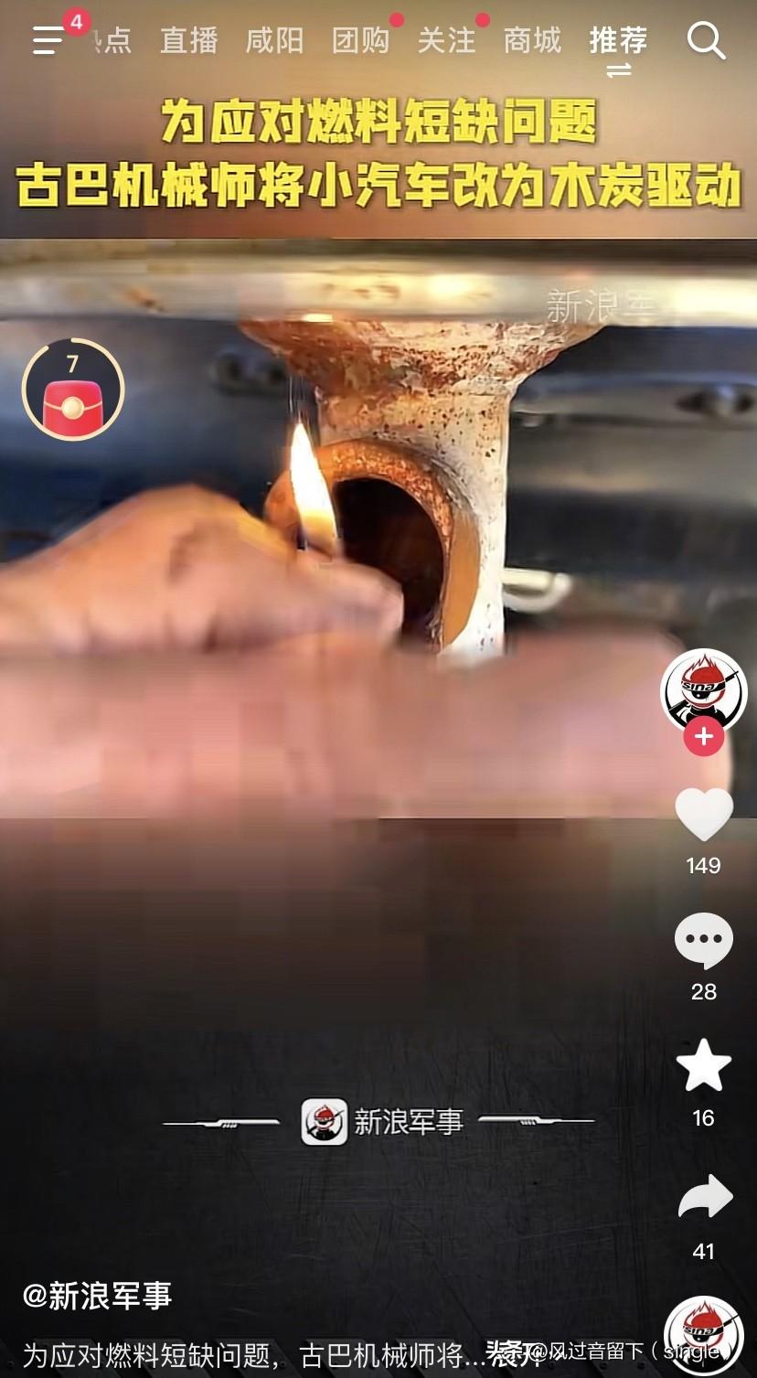 这个在国外可以有! 为了应对燃料短缺的问题,古巴一个机械师把他的车改造了! 这个司机说这个车采用了他叔叔在二战时候传授给他的技术,把小车改为木炭驱动! 用这个办法来应对美国对古巴制裁而导致石油短缺的问题。 打火机点着后,这车最高时速能达到68公里! 这就是一次把木炭加够,然后点火就行了。 就是这对环境污染肯定严重了,如果木炭没烧完全,一路过去就都闻的煤气味。 看来开这个车得戴防毒面罩,要不都一氧化碳中毒。