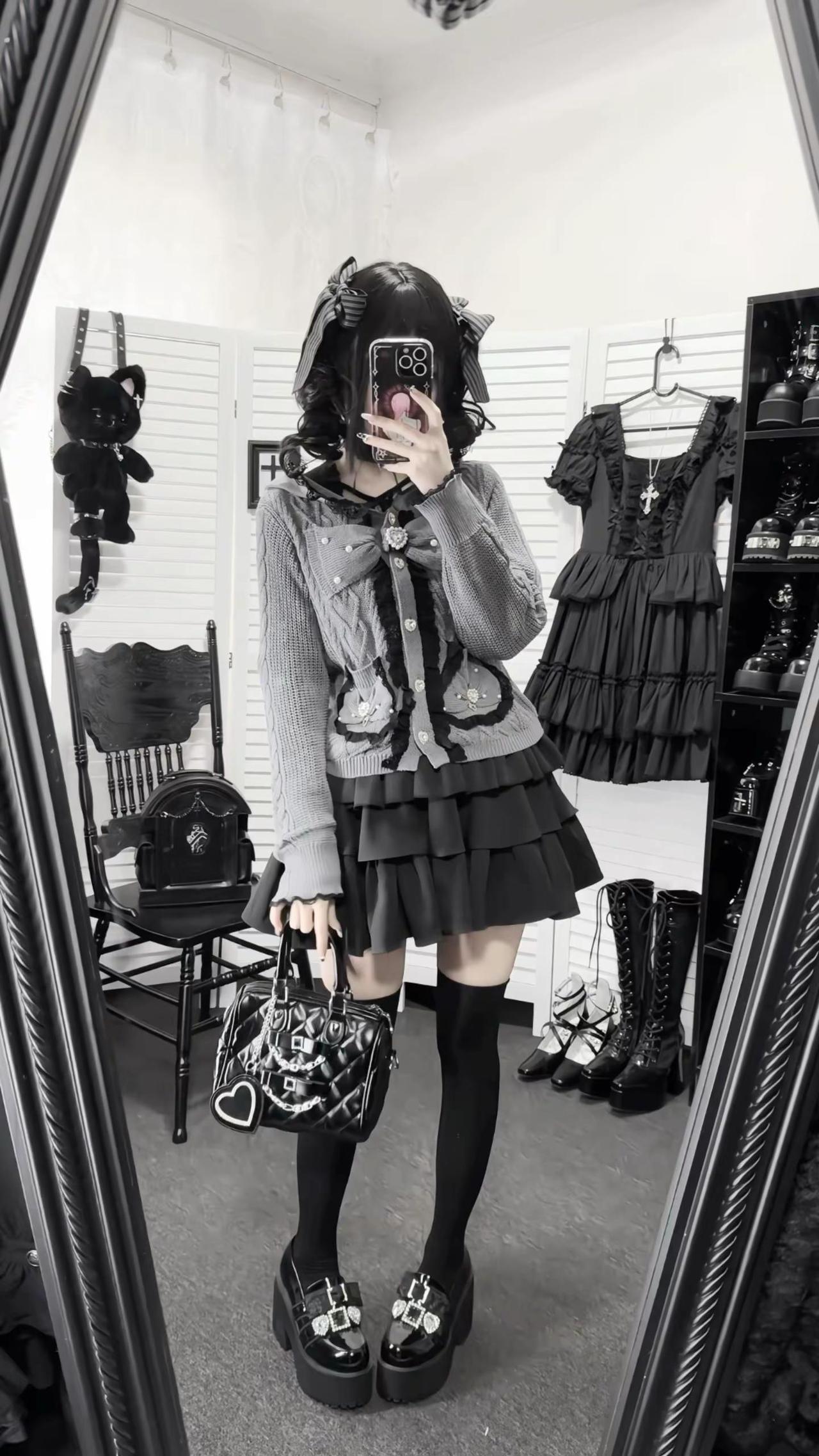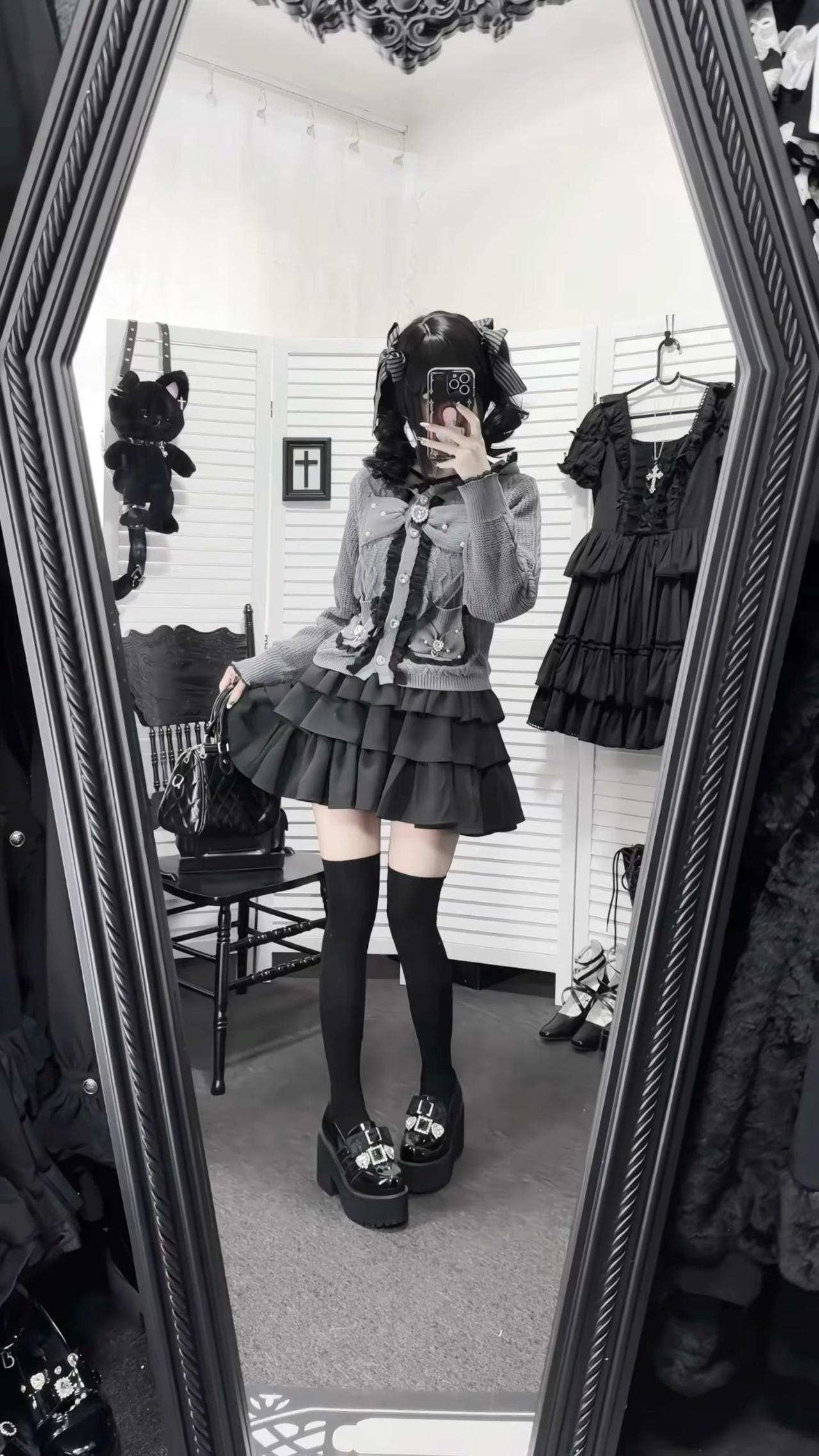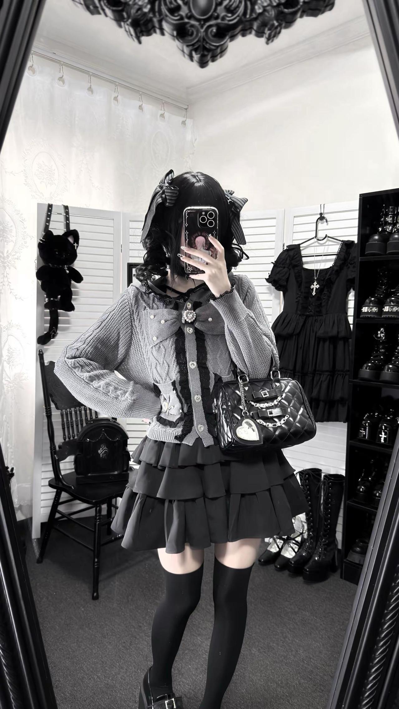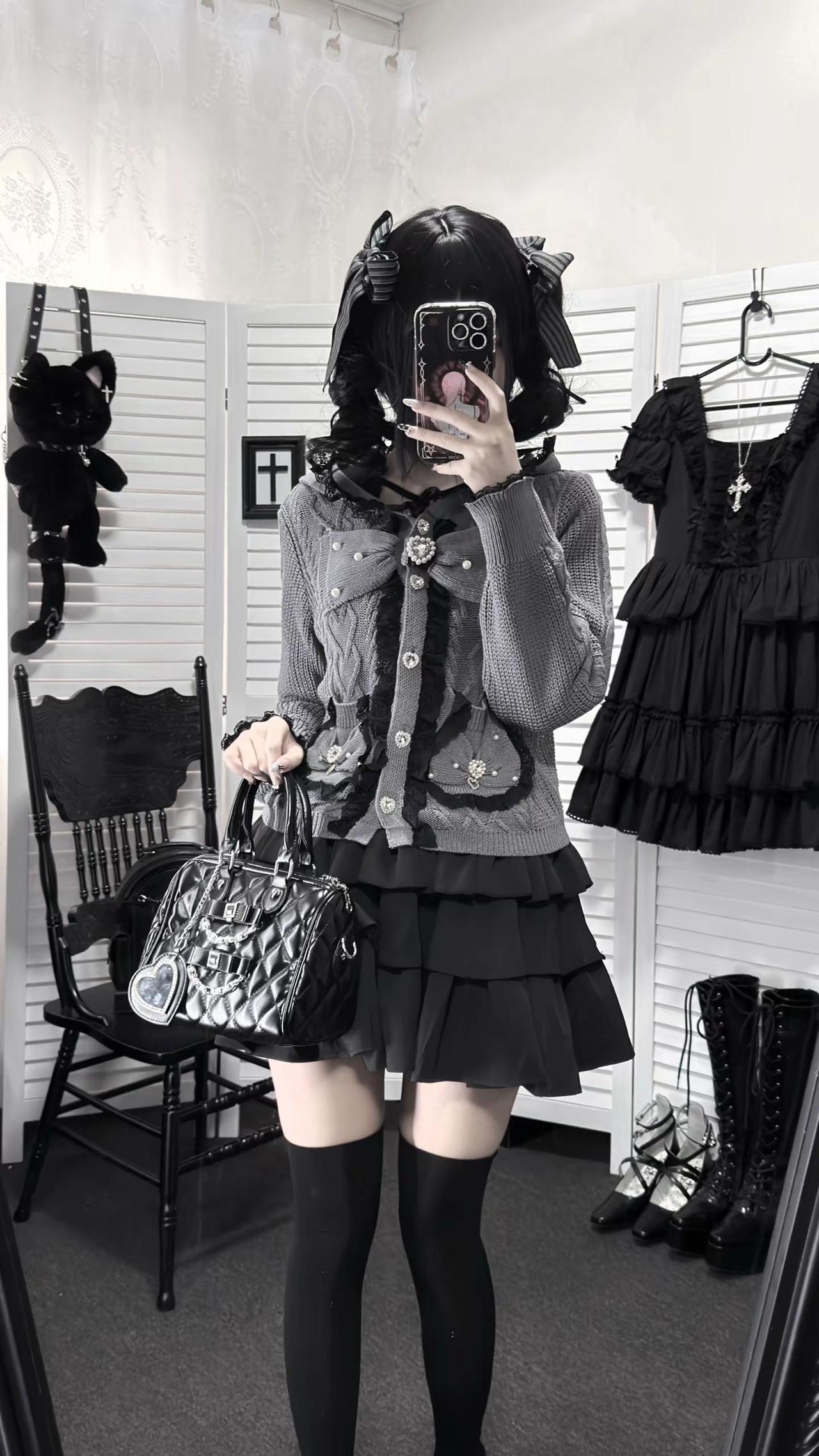 桃月信|初春低饱和蕾系开衫ootd‧₊ 不是很厚~穿一件长袖内搭初春穿刚好!!日系穿搭 低饱和穿搭 今天穿什么 蕾系