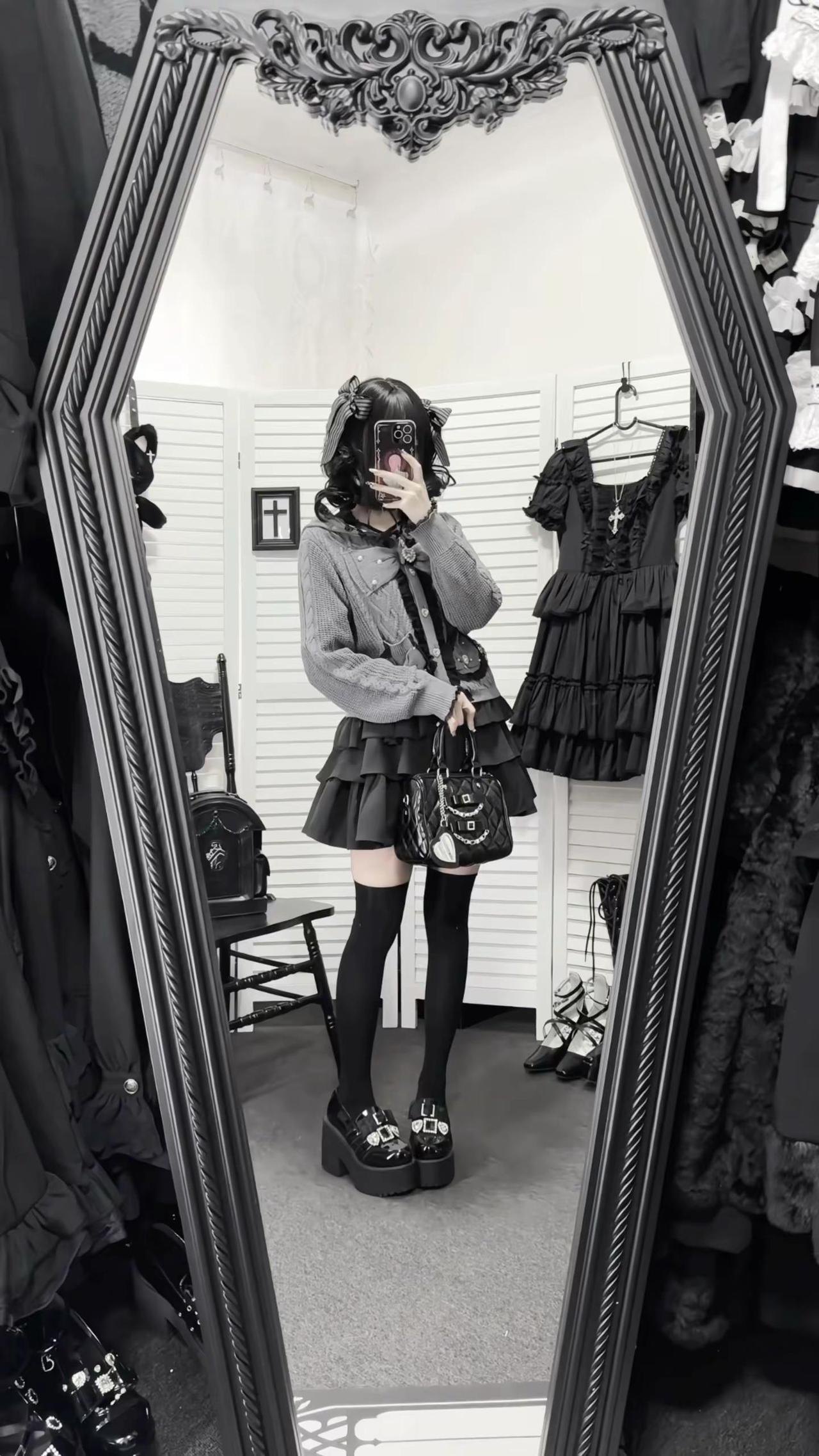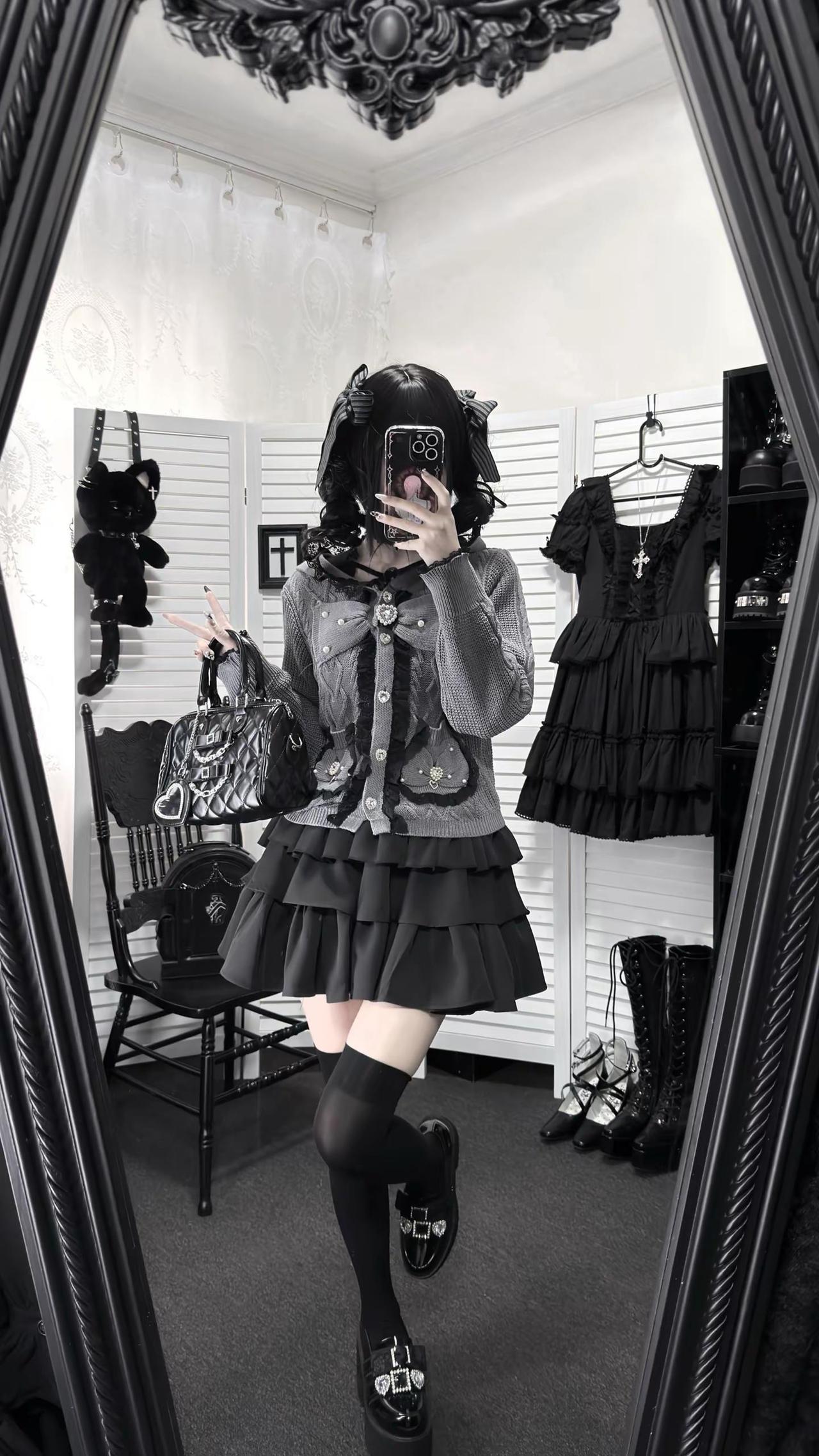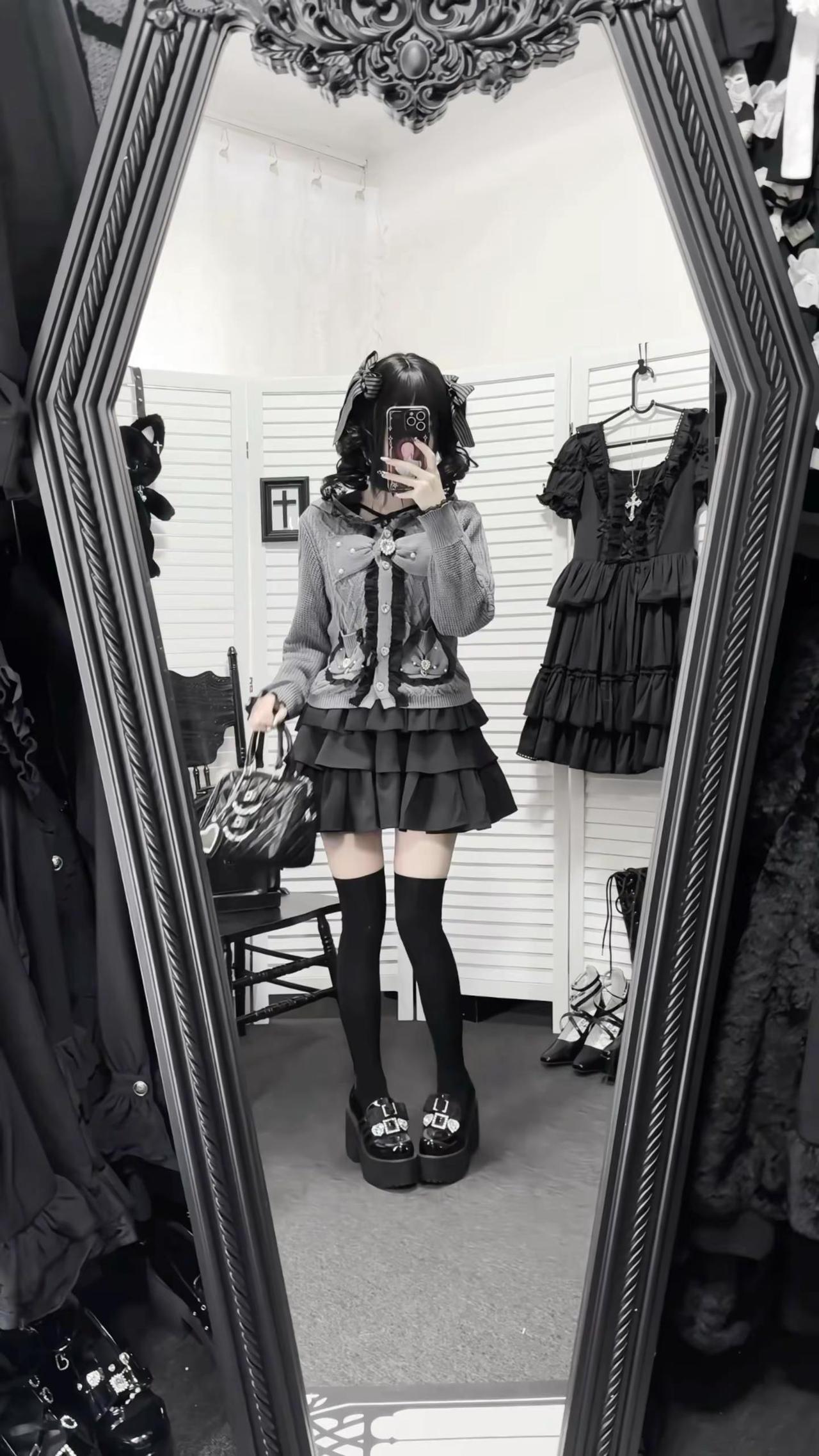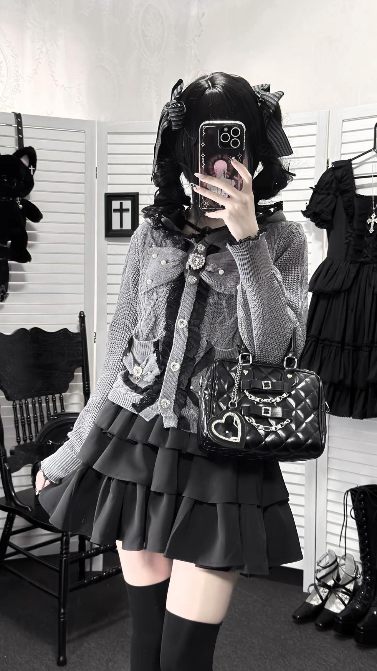 桃月信|初春低饱和蕾系开衫ootd‧₊ 不是很厚~穿一件长袖内搭初春穿刚好!!日系穿搭 低饱和穿搭 今天穿什么 蕾系
