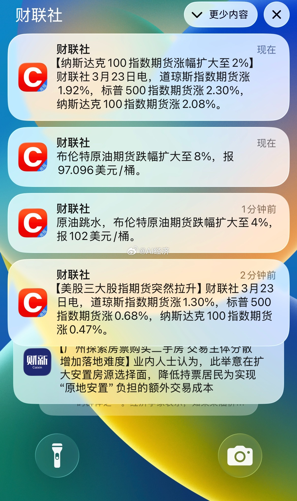 对国内成品油价格采取临时调控TACO?! 油价大跌 资本市场反弹! 不要抢反弹 再三警告!【特朗普称美伊过去两天已进行对话】3月23日电,当地时间23日,美国总统特朗普在社交媒体平台“真实社交”发文称,“美国和伊朗在过去两天进行了非常良好和富有成效的对话”。特朗普称,已指示暂停对伊朗发电厂和能源基础设施的一切军事打击,为期五天。