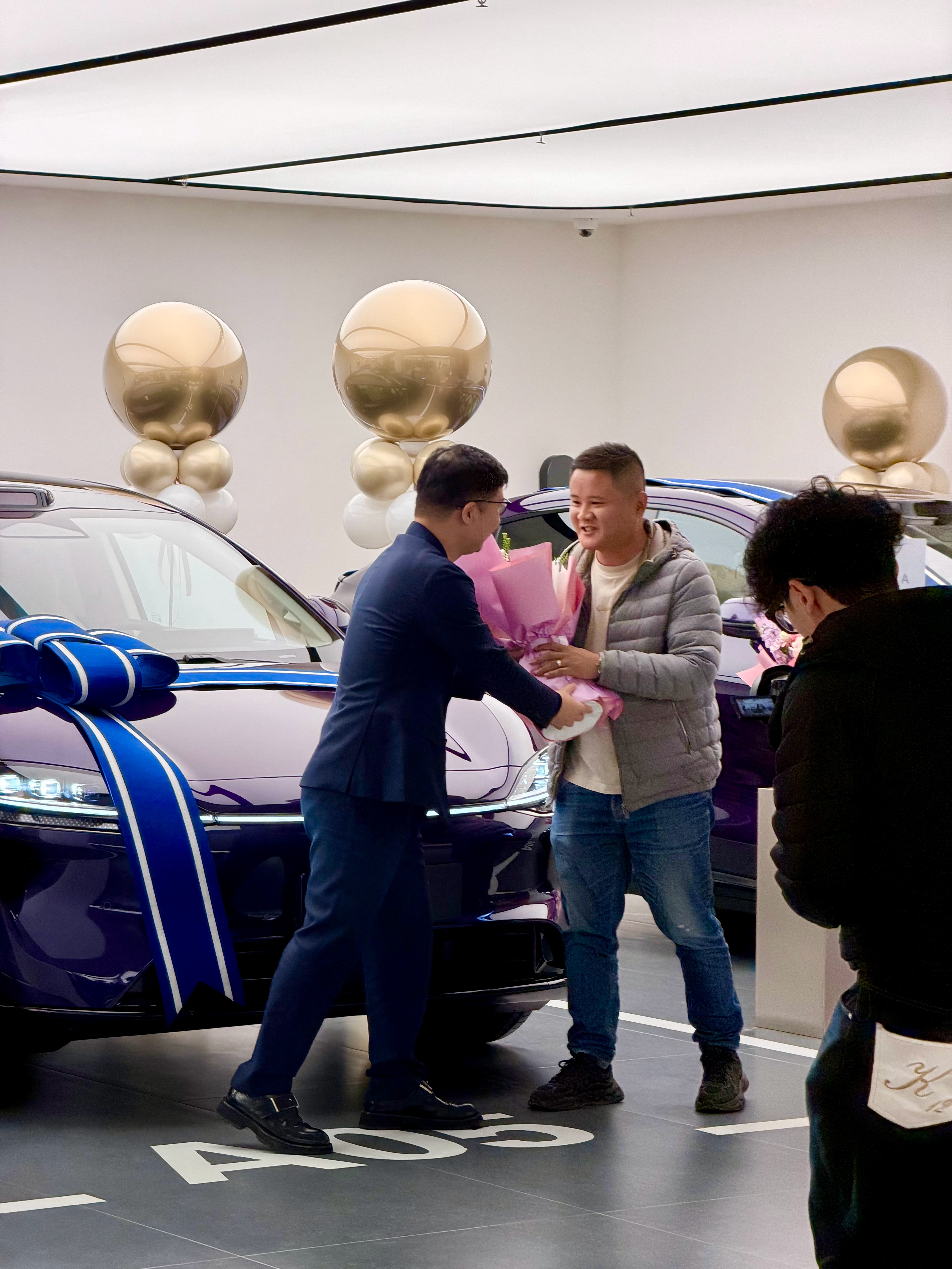 智界的交付节奏确实很快,现场交付的几台都是暗夜紫配色,这个新颜色真的很好看