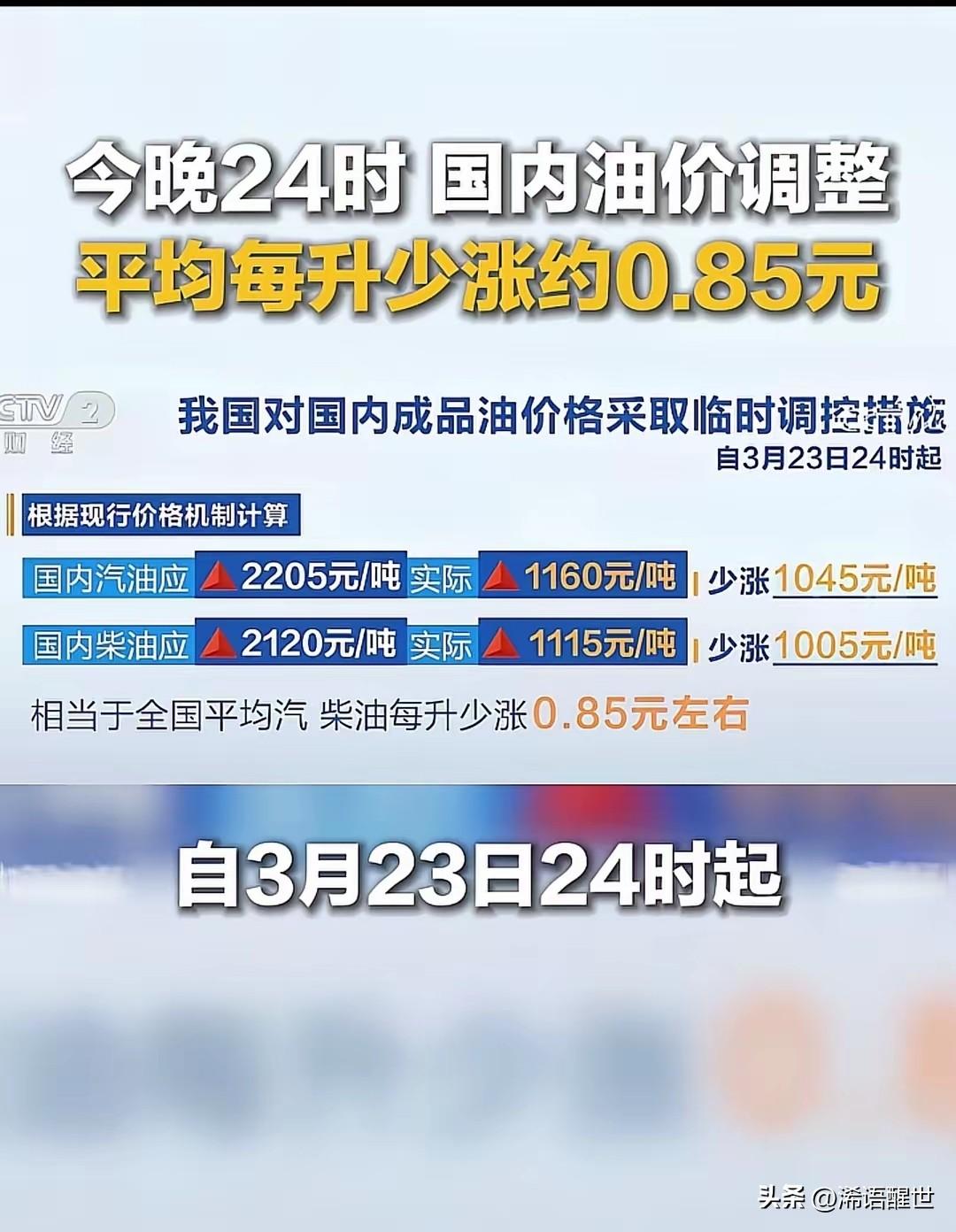 国家这次真是实实在在为车主着想,出手管控油价了!按照原本的调整幅度,今晚油价本该大涨1.6元左右,好在有政策调控,最终只小幅上涨0.85元。 这么一算,车主们每升油能省下将近0.8元,长期下来也是一笔不小的开支。对于经常开车、跑运输的朋友来说,负担明显减轻了不少。关键时刻国家没有忘记普通老百姓,切实考虑大家的生活压力,用实际行动减负惠民,这样的举措真的让人觉得安心又暖心。