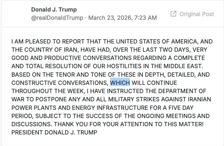 在恐怖倒计时还剩十多个小时的时候,特朗普突然发帖称,过去两天,美国和伊朗就彻底解