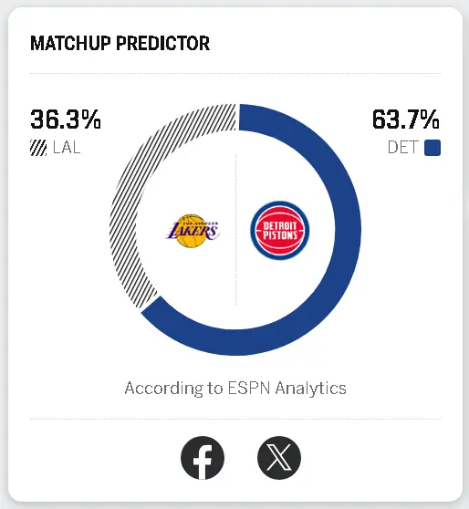 拿不下十连胜吗?湖人明天对战活塞胜率高达36.3%湖人vs活塞