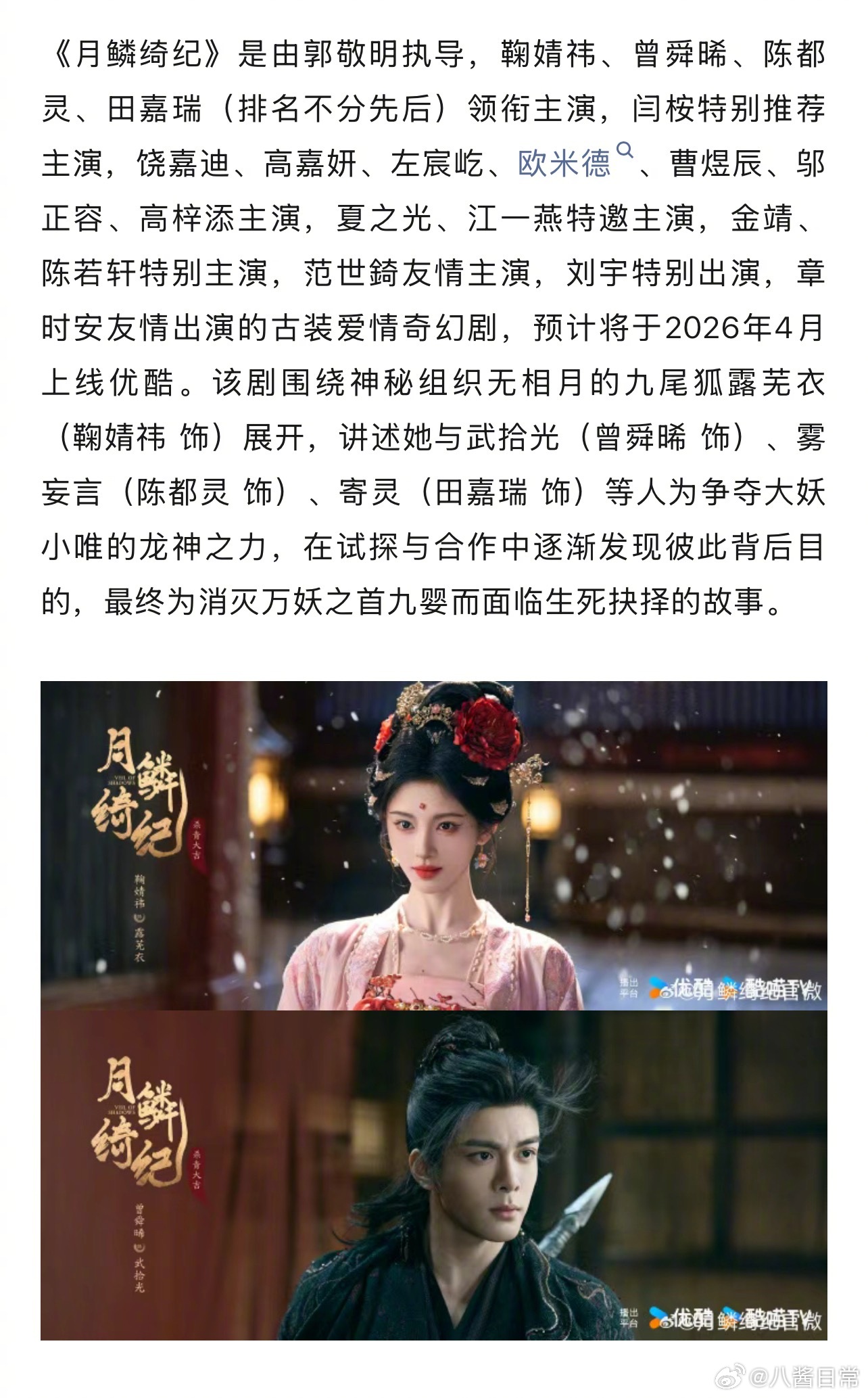鞠婧祎、曾舜晞、陈都灵、田嘉瑞《月鳞绮纪》预计4月1日👖开播月鳞绮纪招商