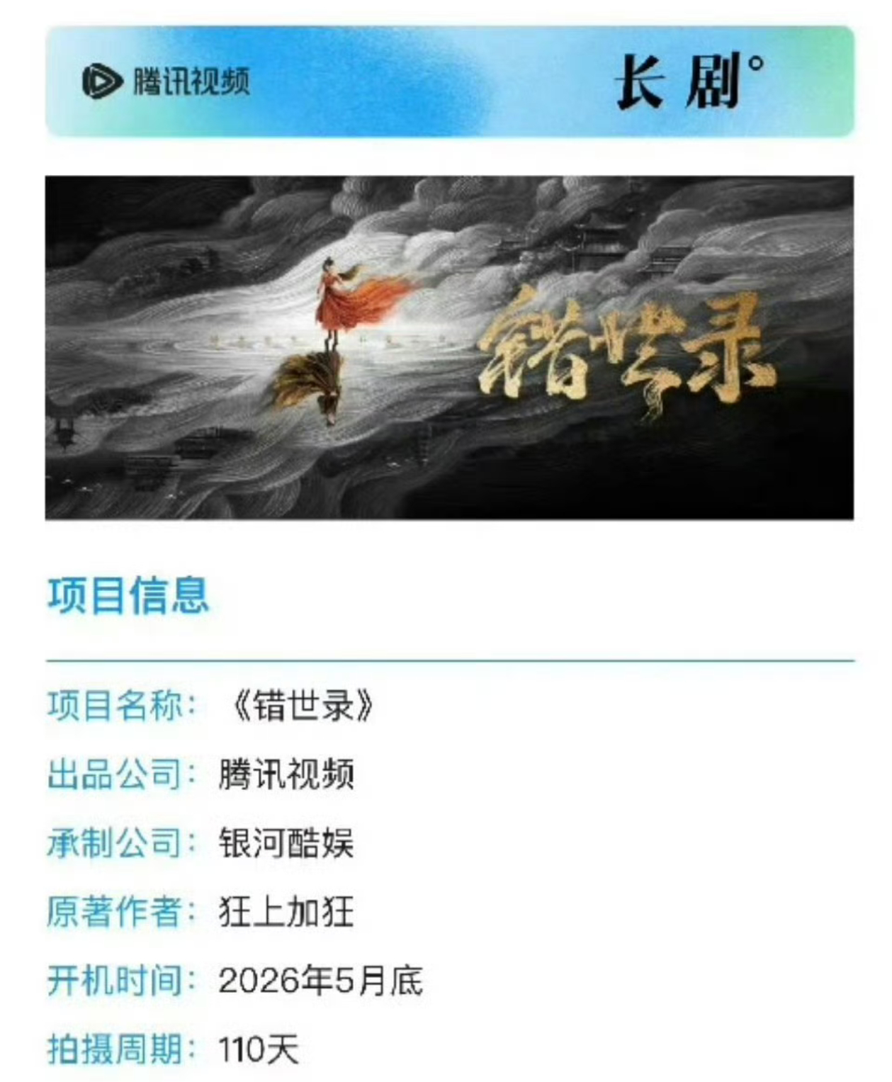 敖瑞鹏 张淼怡《错世录》,5月底开机