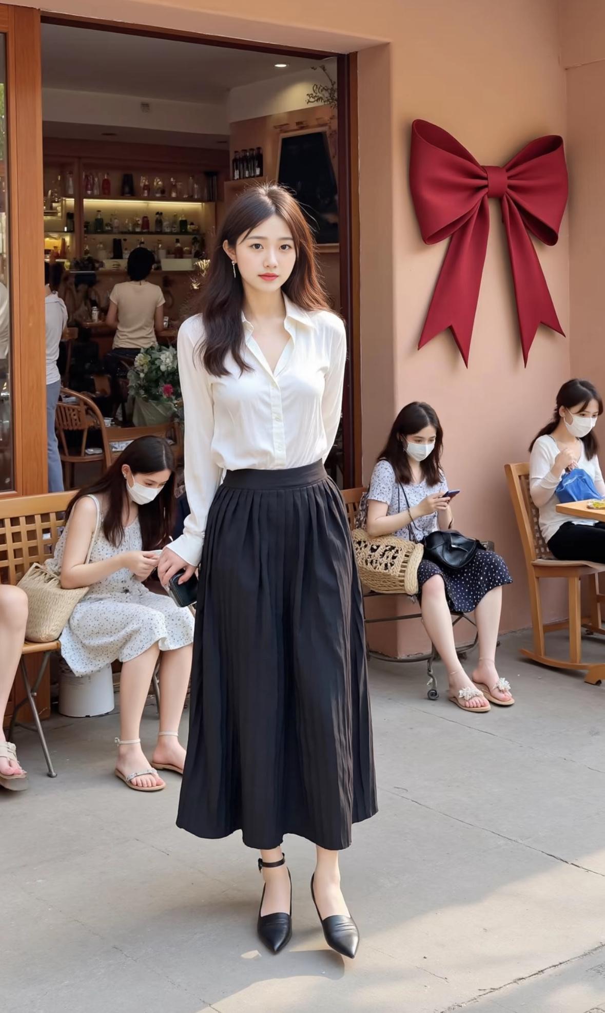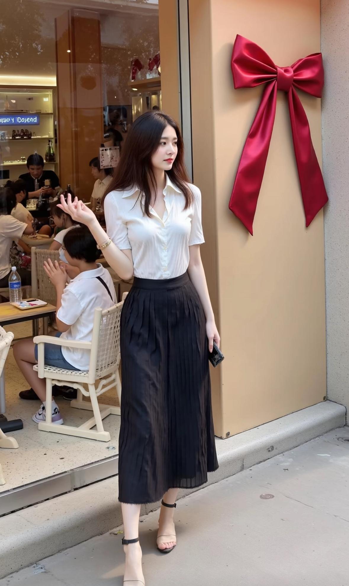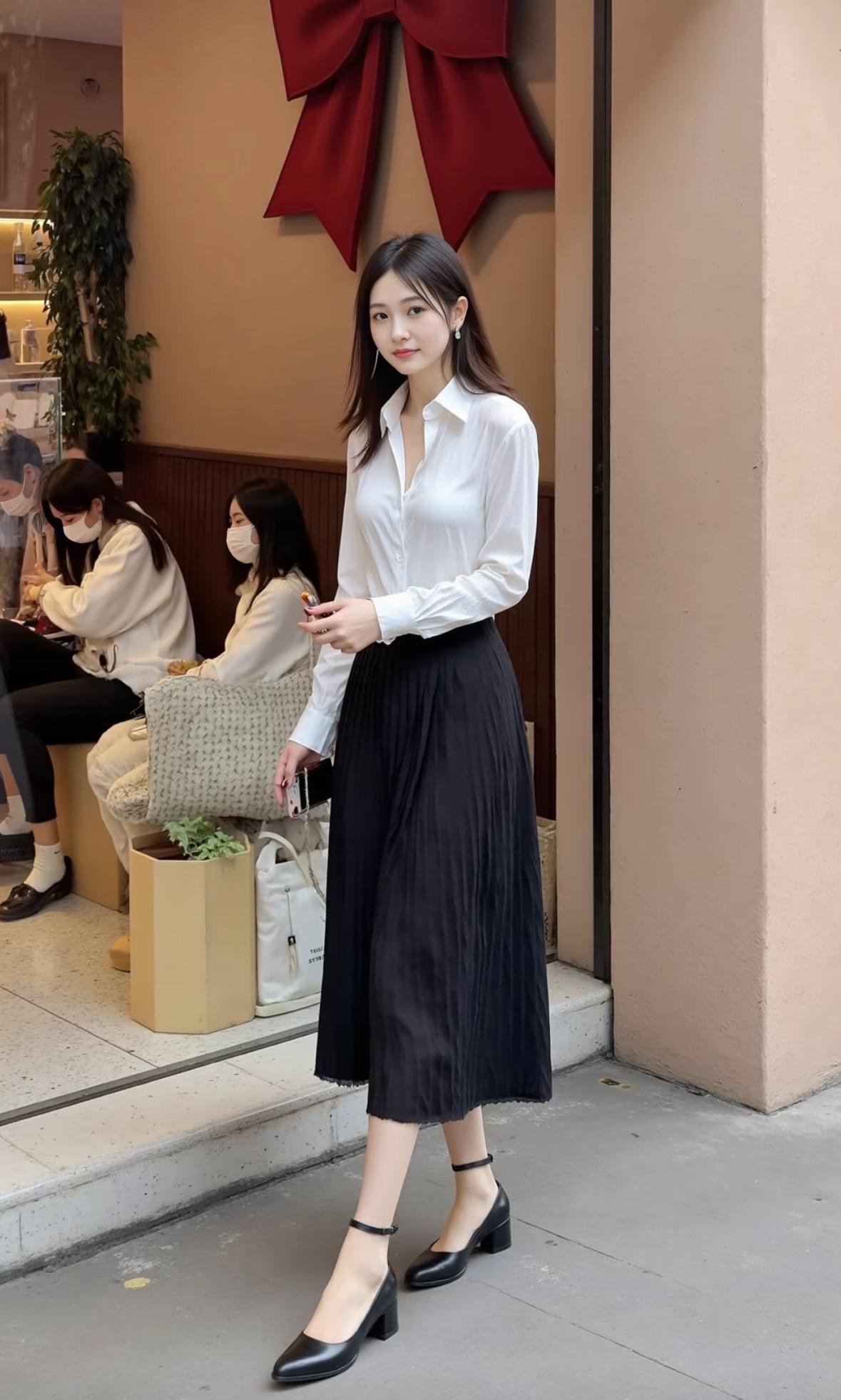 优雅白衬衫+黑色长裙,都市时尚风,完美搭配!👗👠