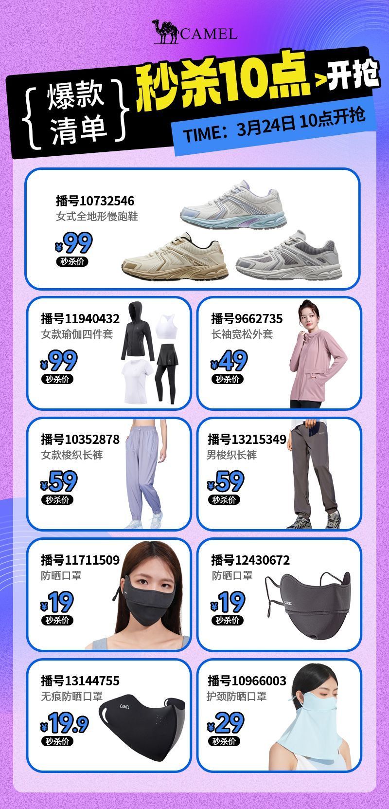 骆驼的专场一直到3.27的10点结束~热卖品可能稍微难抢一点,别的都很好到手!