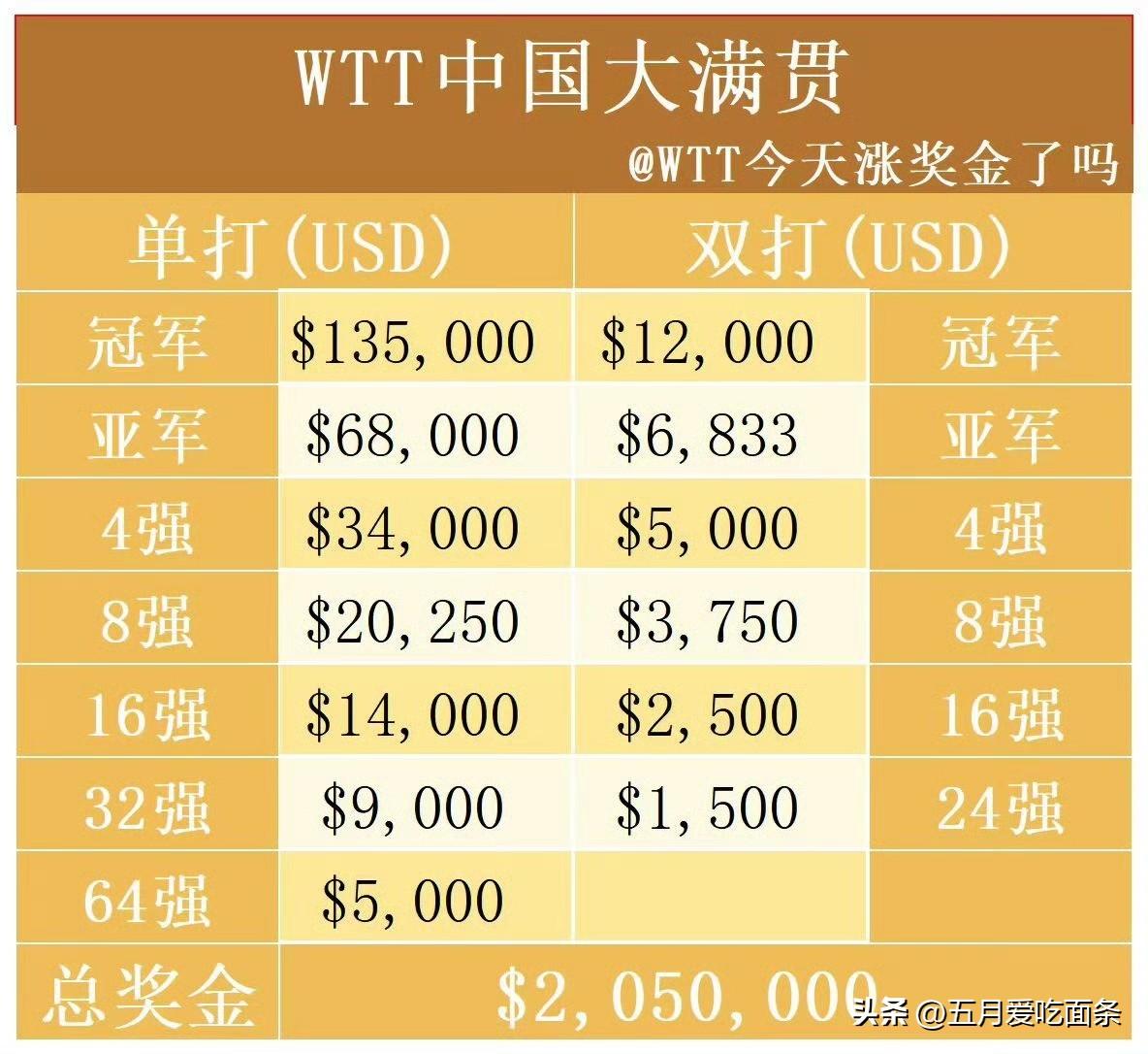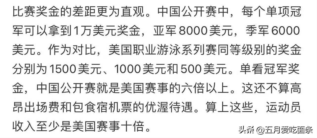 原来一直对乒乓球有着误解, 听着外协说参加WTT比赛,入不敷出,以为乒乓球员是穷的。 对比现在举办的游泳公开赛,乒乓球项目算得上是富足了 拿重庆冠军赛冠军奖金60000美金,北京大满贯135000美金来做对比,同样在中国举办的游泳公开赛,单项冠军奖金只有10000美元。虽然游泳可以参加多项,但是不会每项都获奖,也不会像乒乓球这样,一年有这么多的比赛。 目前乒乓球,可以说是所有运动项目里赛事最多,团体商务价值仅次于游泳,个人商务价值仅次于网球和滑雪的项目。 如果说,个人觉得少,认为拿不到钱,那也是个人能力的问题,不能全怪项目了。