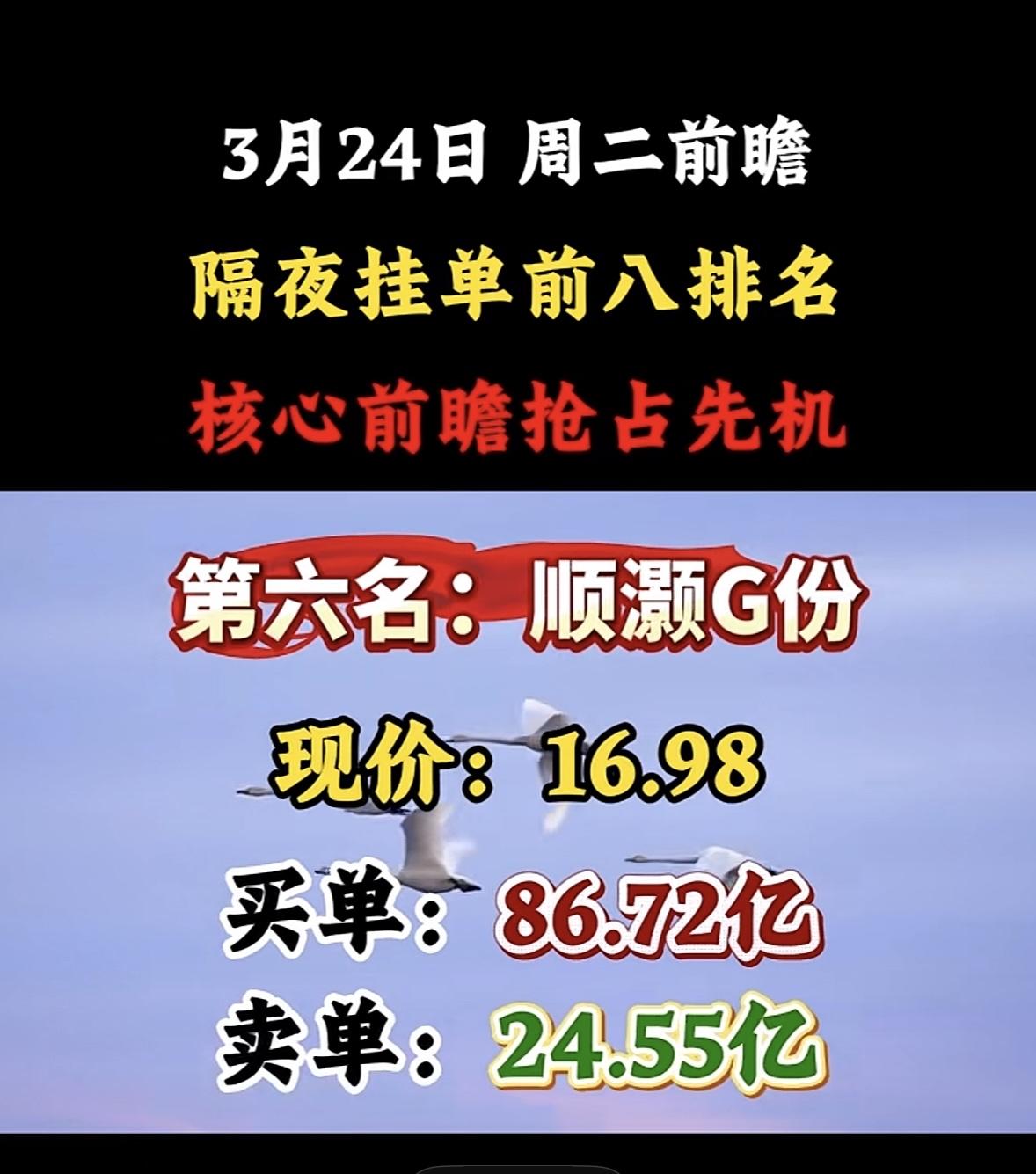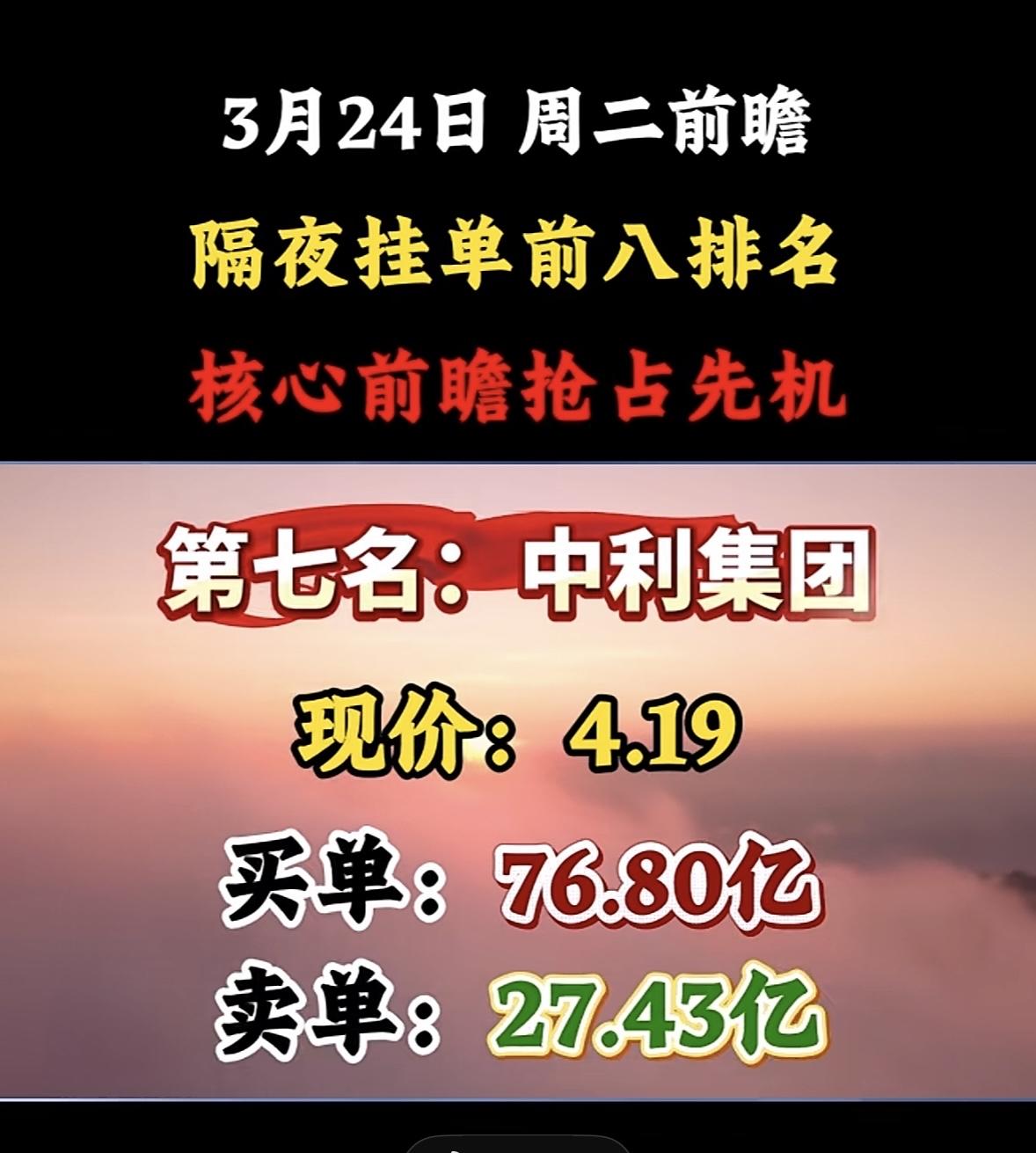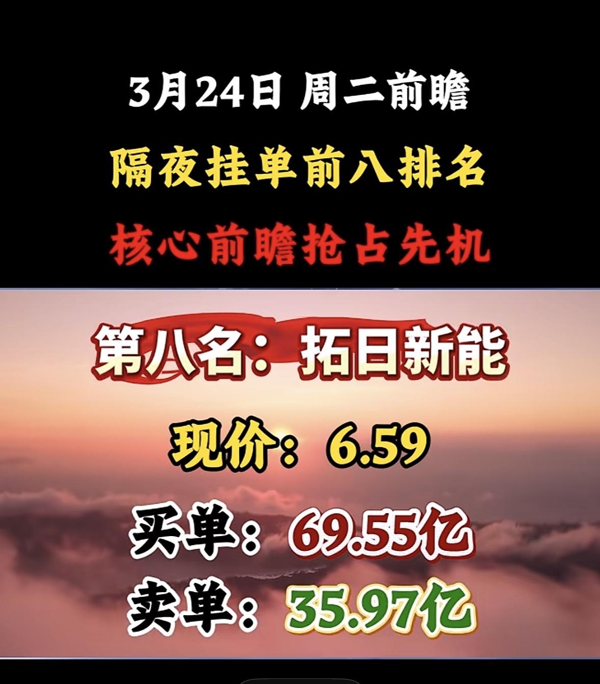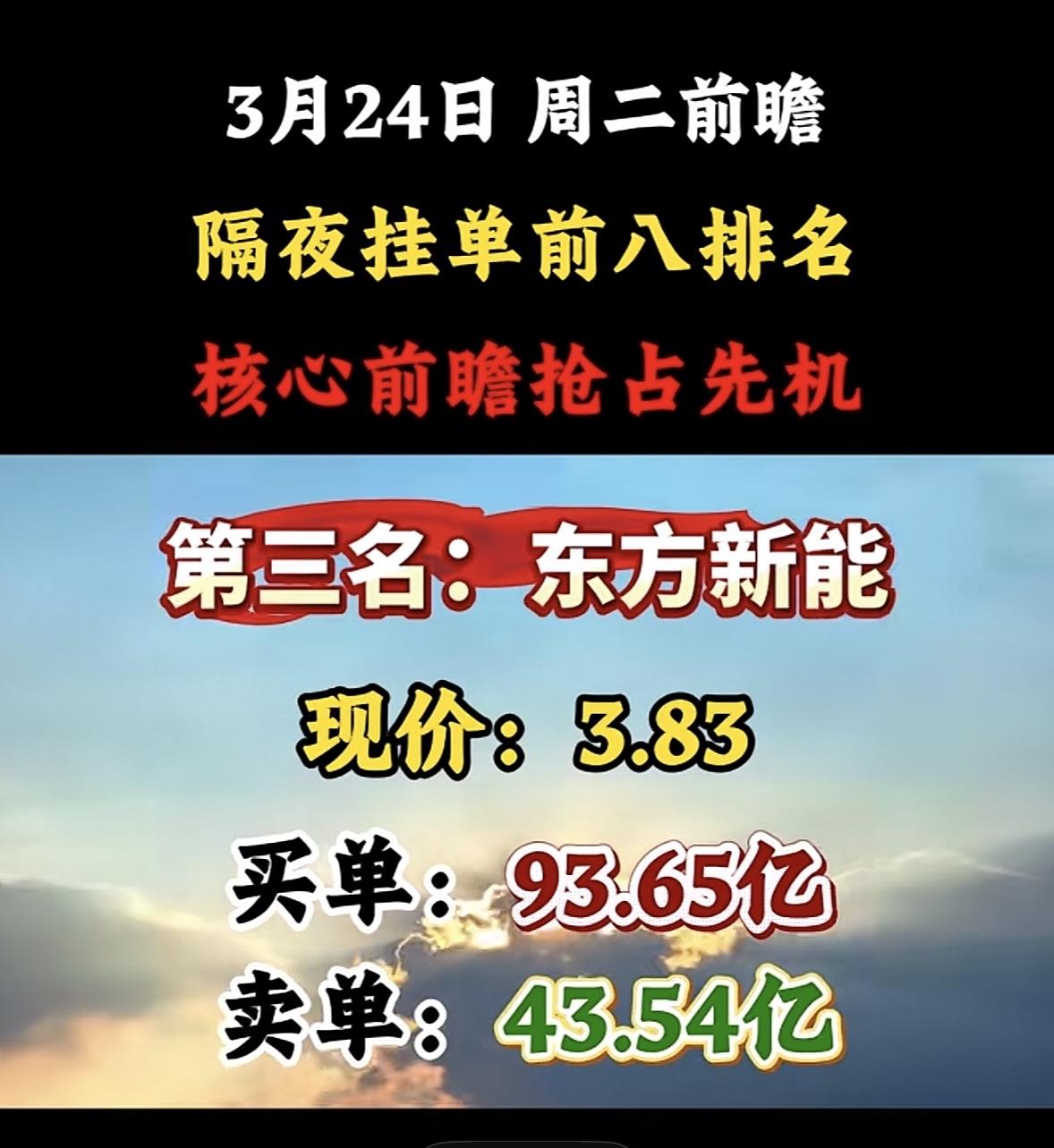 3月24日暗盘隔夜挂单排行榜出炉 3月24日股市前瞻来啦!隔夜挂单前八排名可得好好关注,这可是抢占先机的关键。 昨天A股给了大家一记闷棍,沪指大跌3.63%,收盘在3813点,两市成交2.43万亿,超5100只个股飘绿。投资群和评论区吵翻了天,有人喊割肉,有人想抄底,其实都太极端。今天跌这么狠,技术面关键支撑全破,空头排列成型,沪指跌破3900整数关口和半年线。 再看看2026年3月2隔夜暗盘挂单排行榜,第一名洲际油气挂单94.55亿,现价6.21;第二名通源石油挂单83.70亿,现价15.07。炒股就看龙头找主线,从隔夜挂单里选,结合其他因素,说不定能抓住机会!