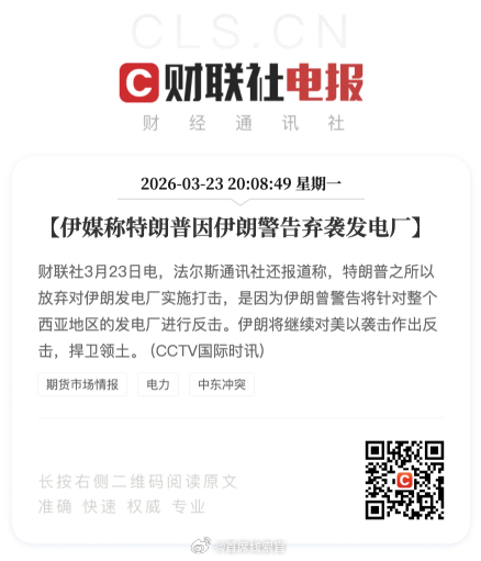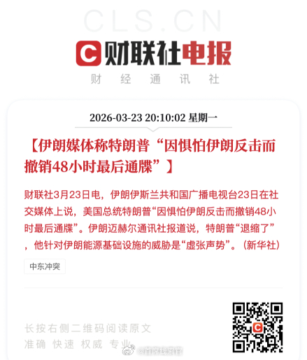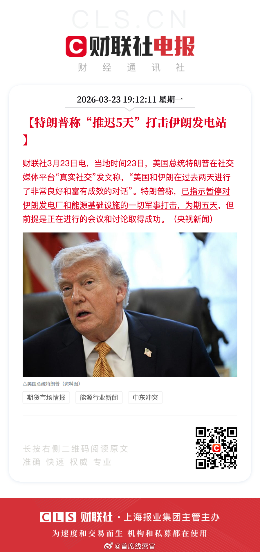 - 特朗普说已经与伊朗沟通,推迟打击 5 天。