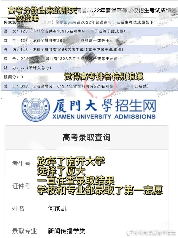 海里来了个真学霸,《春山境》副受是河南省高考文科五百多名,放弃了南开选择厦大,就