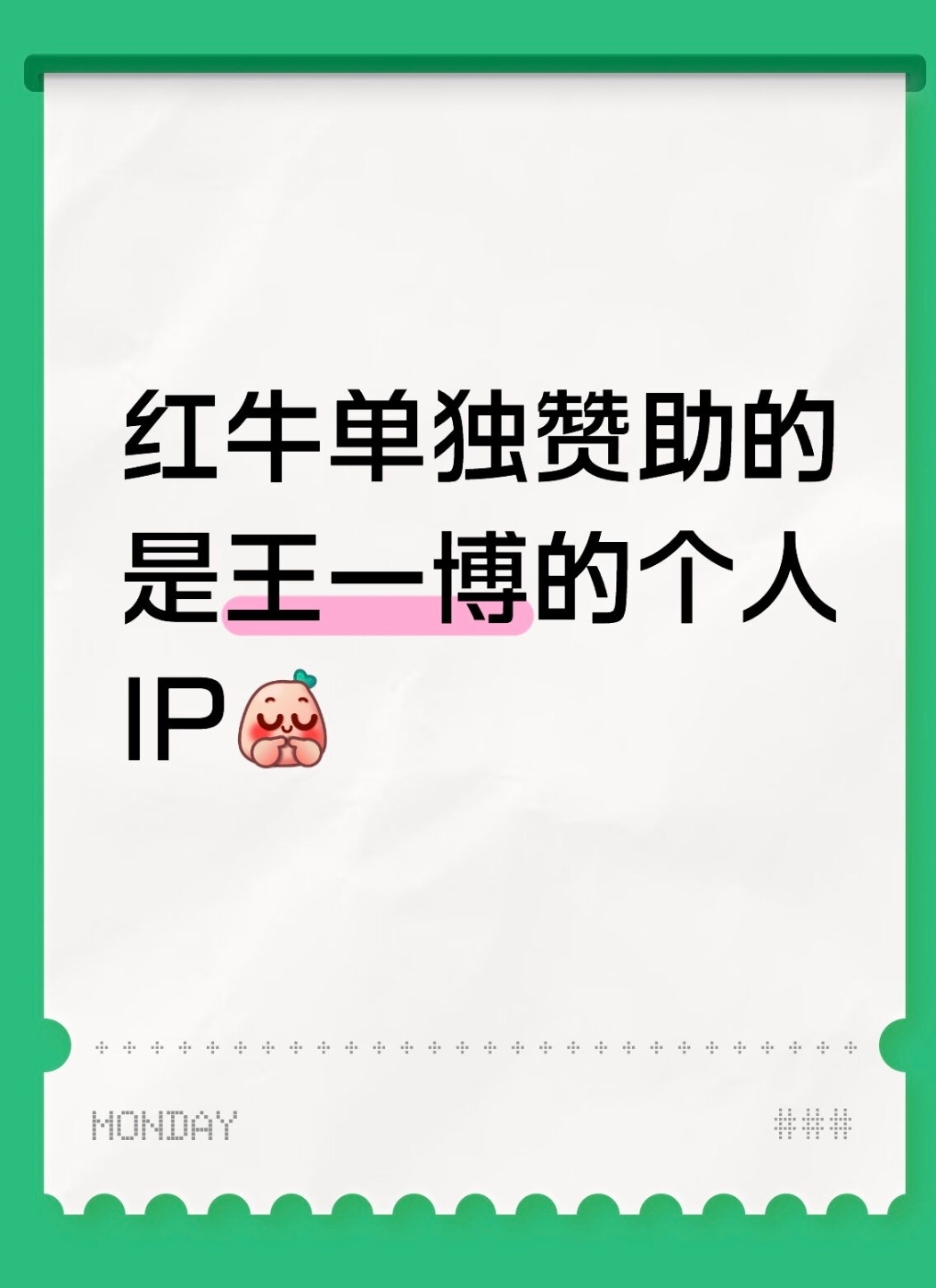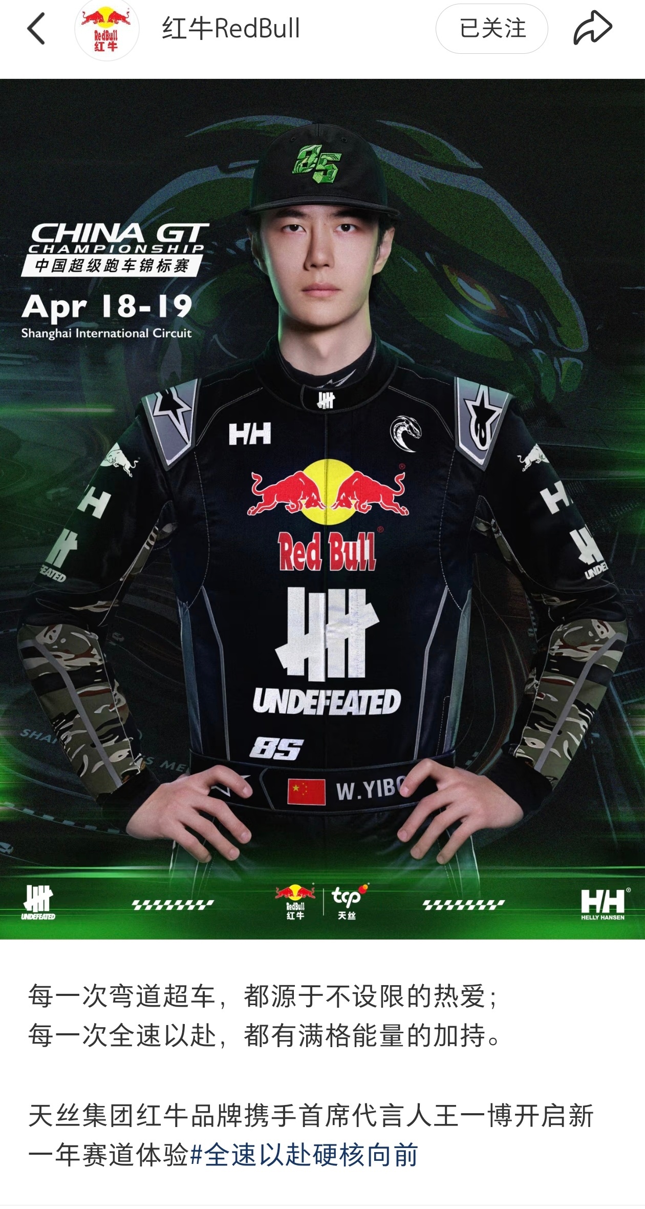 谁懂红牛这么大在赛车车衣上的含金量!!!!红牛单独赞助的是王一博的个人IP!!王一博