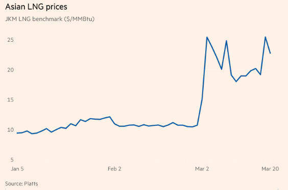【#英媒预警全球天然气供应链10天后恐中断#】3月22日,英国《金融时报》发出预警:随着最后几艘来自海湾地区的运输船抵达目的地,未来10天内,该地区液化天然气(LNG)供应将突然中断,全球处于天然气断供边缘。