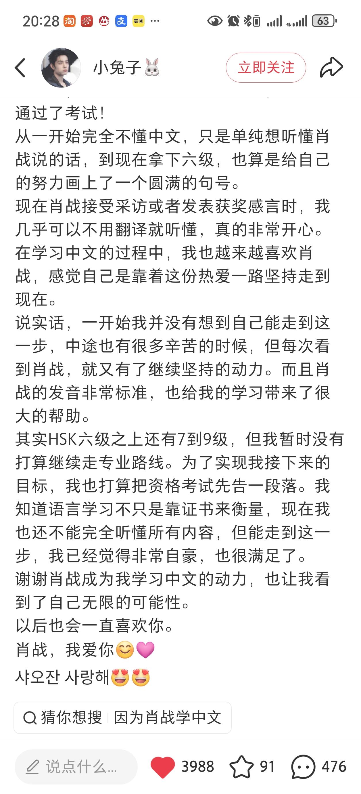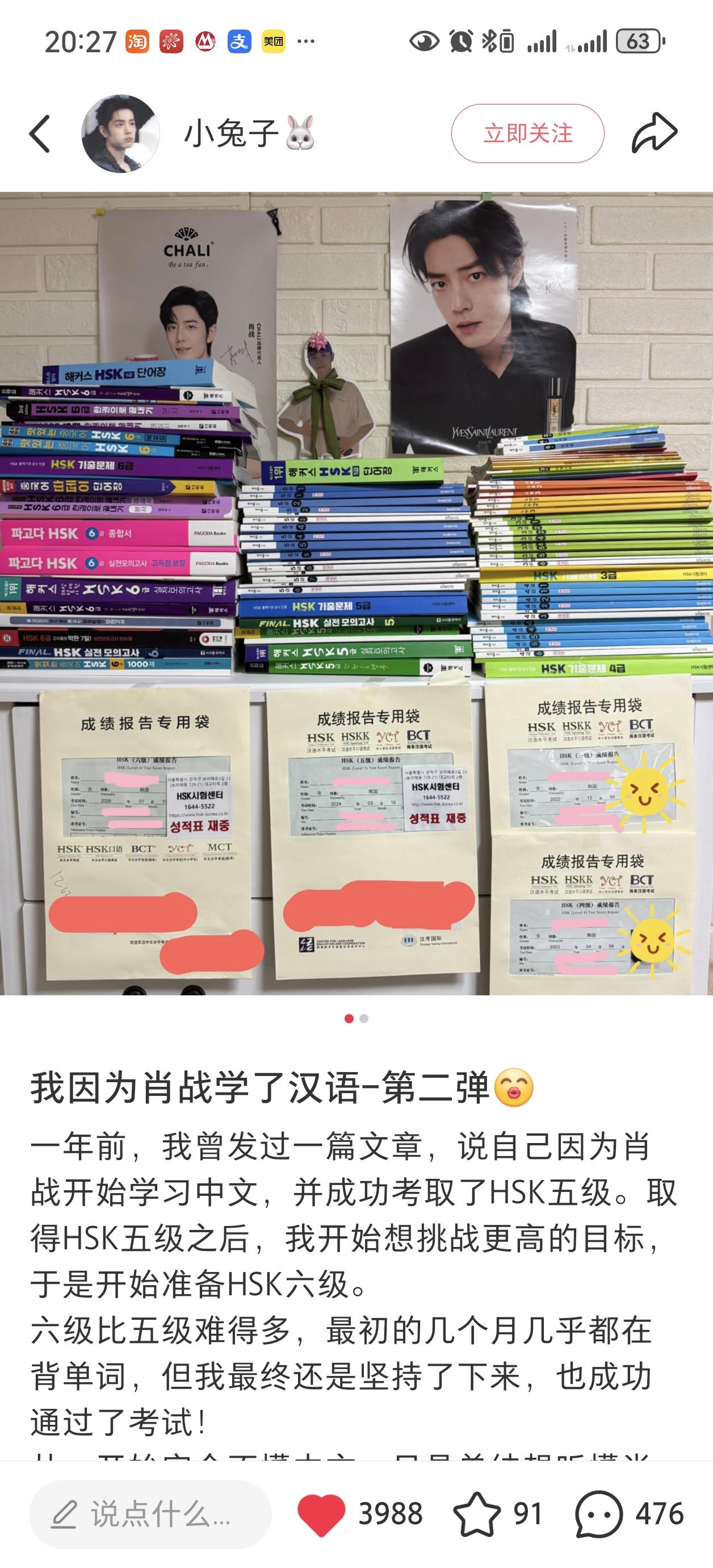 在小红🍠不止一次刷到因为喜欢肖战,苦学中文的国外小飞侠,在传播中国文化这块,肖