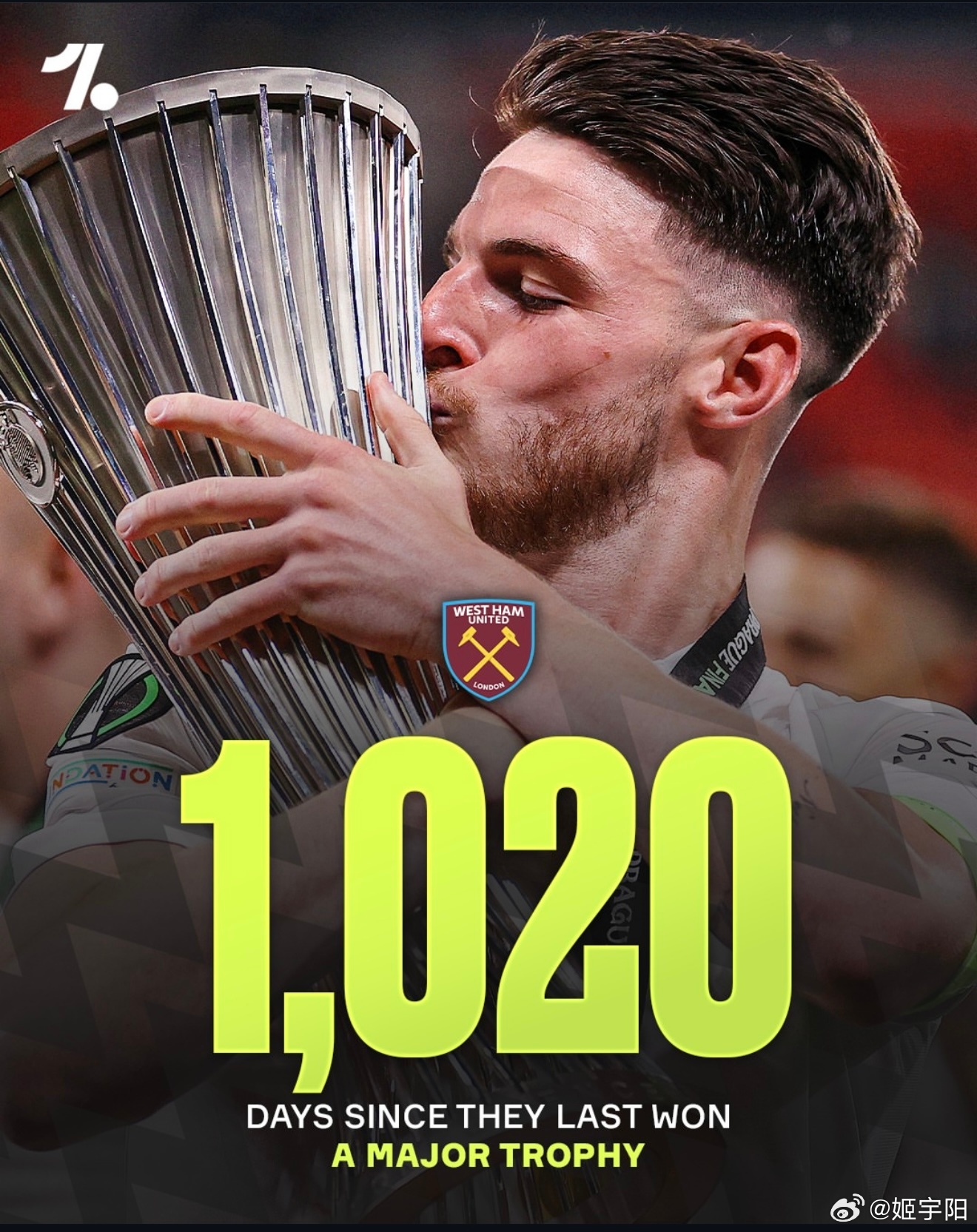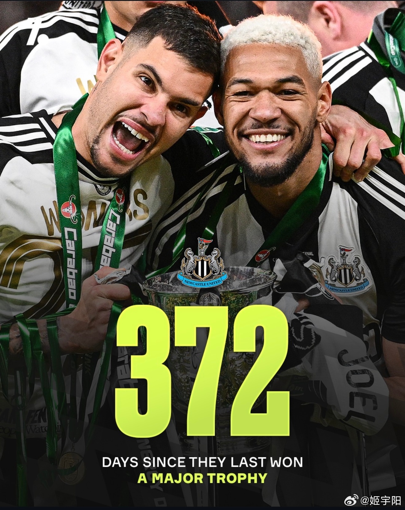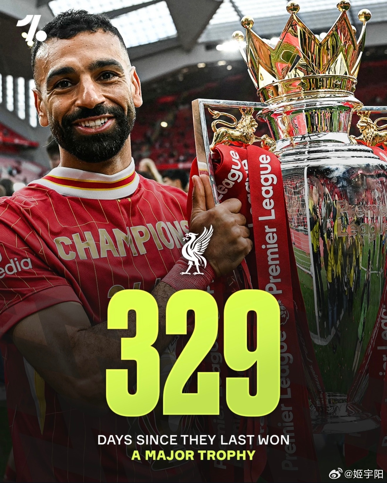 图中的数字,分别是他们上一次重要赛事夺冠之后,到现在的总的天数。是按照英国当地时
