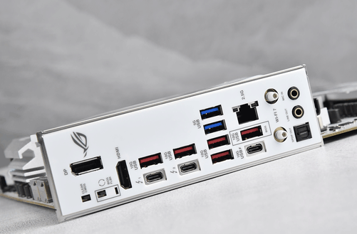 这款主板I/O区域提供了10组USB接口,其中包含2组目前最强的雷电4接口,提供40Gbps带宽。