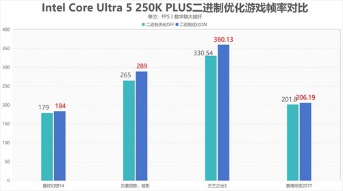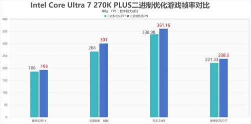 此外,这一代产品最为重要的一个软件技术,是引入了英特尔二进制优化技术(IntelBinaryOptimizationTool),这是英特尔首创的一项二进制转换优化技术,能够提升特定游戏的原生性能。它能够提高处理器的每周期指令数(IPC)和最终用户性能——即使该工作负载是针对其他x86处理器、游戏主机或早期架构而优化。本次评测我们也专门针对二进制优化性能进行了测试,确实有比较明显的提升。