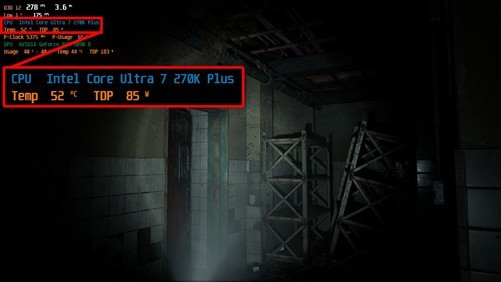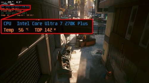 另外从一些游戏实机截图中也能看到,酷睿Ultra200SPlus平台游戏帧率暴增的同时,其实际功耗和发热并未相应增高,整体能效表现同样进步明显。