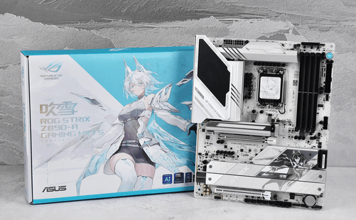 本次首测搭配使用了华硕ROGSTRIXZ890-AGAMINGWIFIS吹雪主板,这款吹雪新品不仅颜值超高,增加吹雪姬IP剪影。用料也十分豪华,配备16+1+2+2供电模组,内存支持到9066MT/s,可充分发挥酷睿Ultra200SPlus系列处理器的性能。