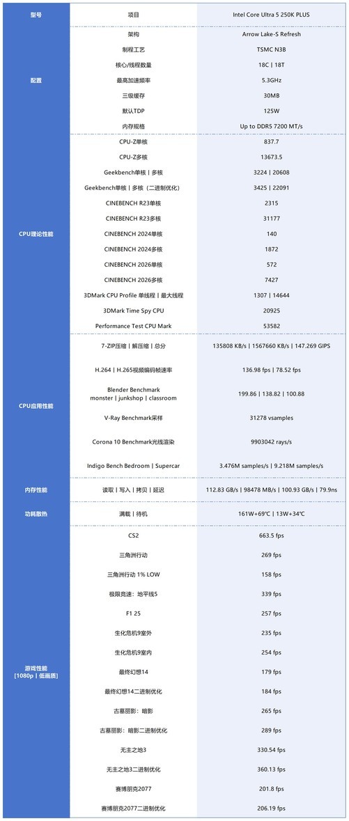 所幸,全新的英特尔酷睿Ultra200SPlus带来了足够惊艳的首秀表现。尤其是前代产品优化不太正常的地方,例如压缩/解压缩性能、渲染/采样性能以及实际游戏帧率等短板被彻底补齐。这不仅体现在酷睿Ultra7270KPlus上,更体现在了面向大众用户群体的酷睿Ultra5250KPlus身上。