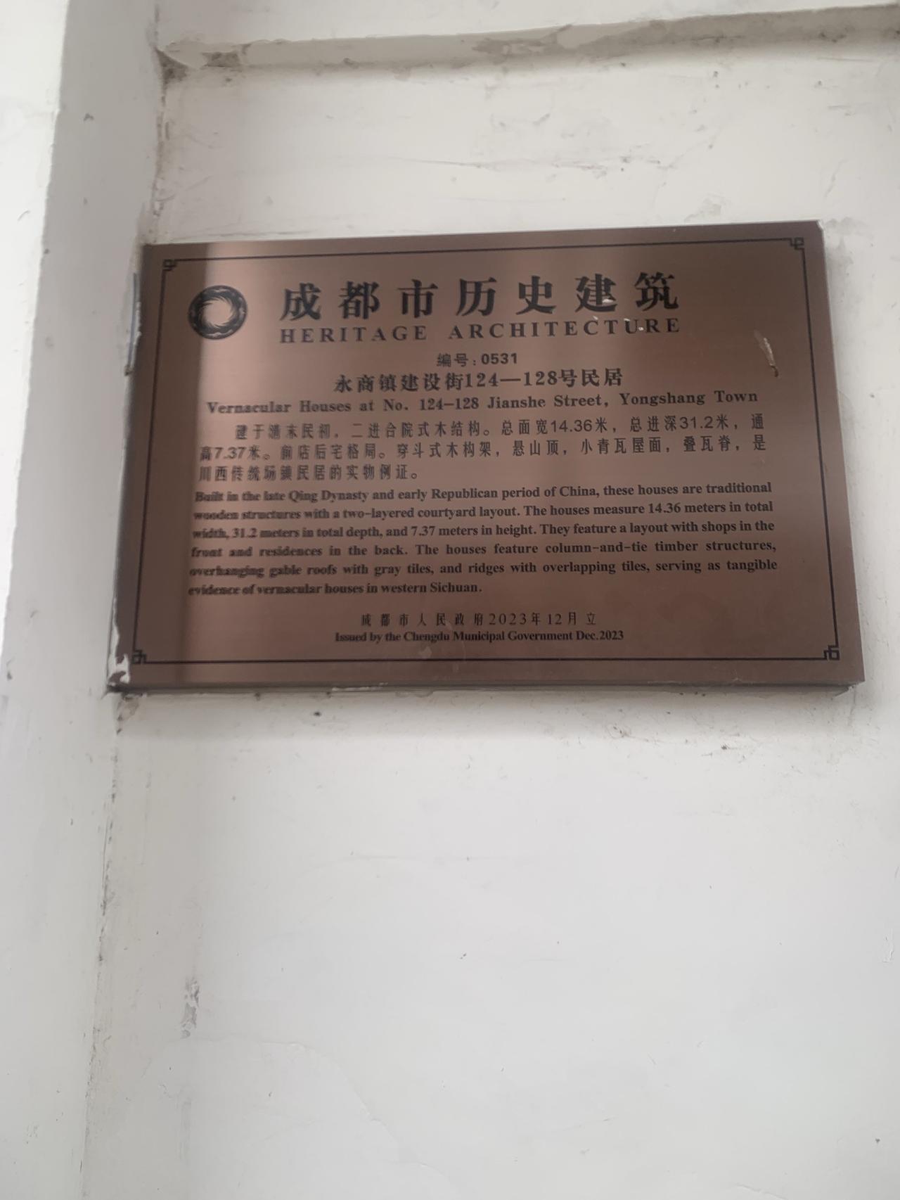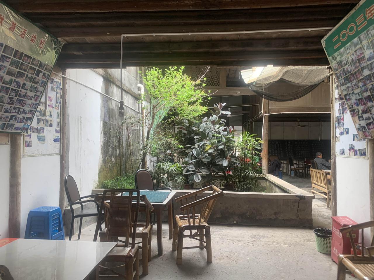 昨天上午9点50分左右,从我常喝早茶的成都星辉中路向65公里外的成都新津永兴场游走。 永兴场一个历史悠久、保存较好的古镇,地处新津、邛崃、彭山、蒲江四县交界处,紧邻南河,曾是重要的水陆商贸码头。永兴场位于新津区西南约10公里处,南河右岸,它目前仍保留着“三横一竖”的四条老街(建设街、胜利街、保卫街、和平街),其中建设街和保卫街保存最为完整,建筑多为清末民初至建国后的川西民居风格,生活气息浓厚,商业化较低。 先后乘地铁17号线,7号线、10号到儒林路口站后,乘公交522路(17𠆤车站)到达永兴场历时2个小时2 0分。 下了车就问了当地人老街在什么地方,当地人十分热情,准确地指引方向,可以说没有走任何冤枉的路,很快就到了老街。 老街上几乎没有商业,有的老房子门口坐一、两个老人望着空空的盖道和我这个陌生人…. 街上老房子较多,参观了有120年历史的孙家大院、还有300年历史的清朝古井…. 在一座老房子的茶馆里喝茶,房子四周全是老砖墙,里面没有麻将,房顶很高、新老交替。喝茶的都是老人,几乎不说话,我感觉回到了上个世纪80年代….我在这里喝了一个小时的茶,就离开了,穿越回到了现代的社会。 ,